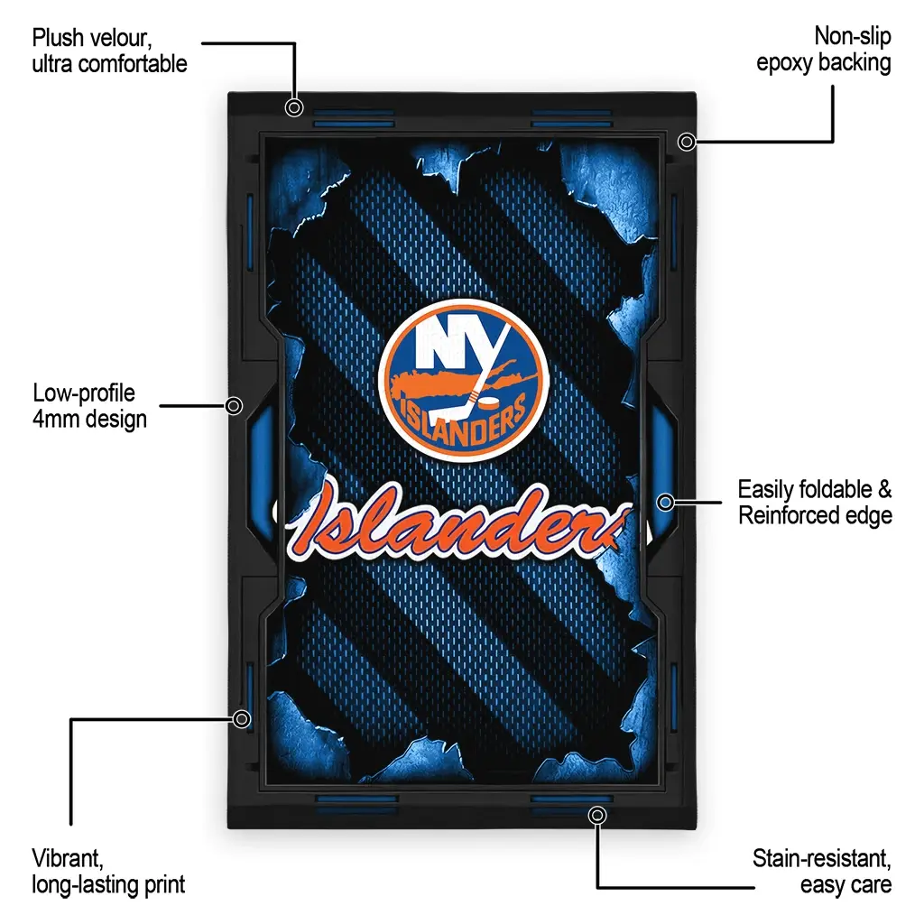 Hit a home run with your favorite team by displaying the New York Islanders Rug – Personalized Torn Mesh Blue from MLB Fan Zone. Featuring a bold team design and crafted with plush velour, this durable sports rug offers ultimate comfort for your home or game-day fan cave. With a quality non-slip grip and stay-flat design, it’s the perfect accessory for any die-hard fan ready to rep their team from the living room to the clubhouse.