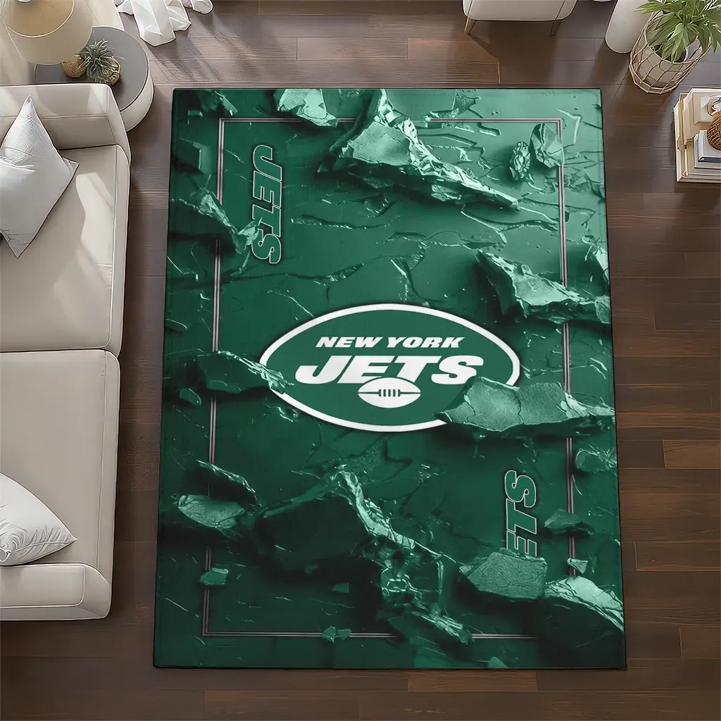 New York Jets Rug – Cracked Surface Design Green