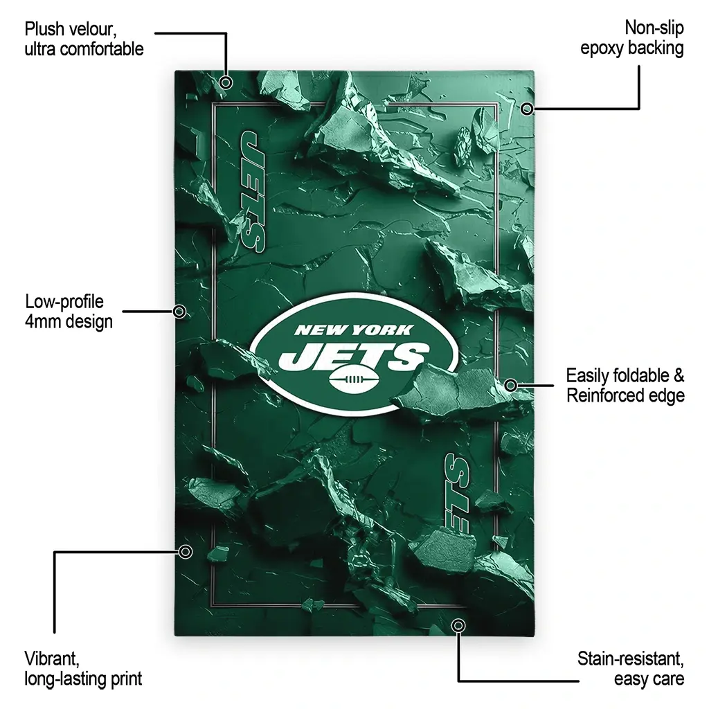 Hit a home run with your favorite team by displaying the New York Jets Rug – Personalized Cracked Surface Design Green from MLB Fan Zone. Featuring a bold team design and crafted with plush velour, this durable sports rug offers ultimate comfort for your home or game-day fan cave. With a quality non-slip grip and stay-flat design, it’s the perfect accessory for any die-hard fan ready to rep their team from the living room to the clubhouse.