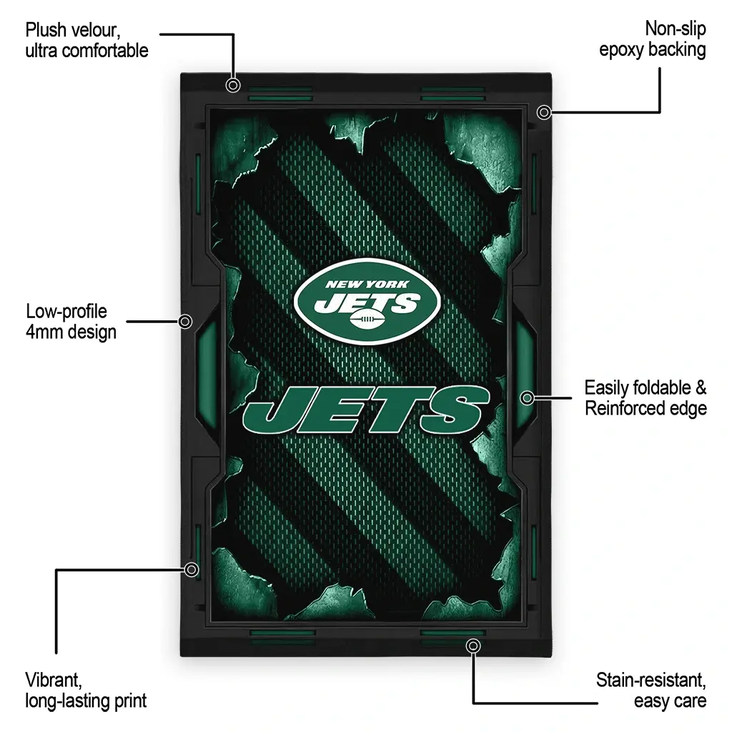 Hit a home run with your favorite team by displaying the New York Jets Rug – Custom Torn Mesh Green from MLB Fan Zone. Featuring a bold team design and crafted with plush velour, this durable sports rug offers ultimate comfort for your home or game-day fan cave. With a quality non-slip grip and stay-flat design, it’s the perfect accessory for any die-hard fan ready to rep their team from the living room to the clubhouse.
