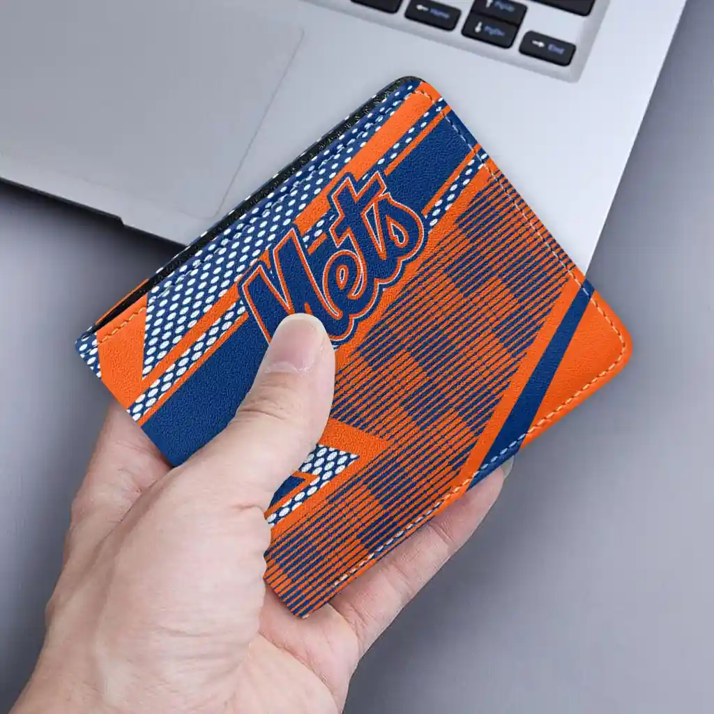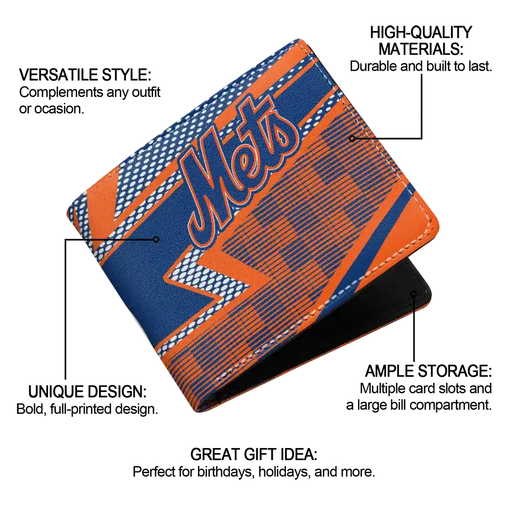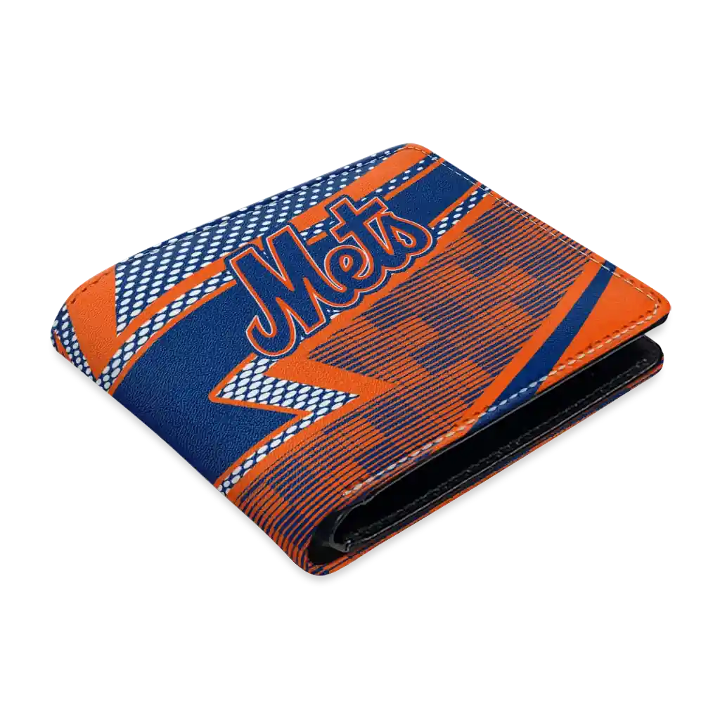 Hit a home run with New York Mets by wearing the New York Mets Arrow Mesh Blue Wallet. Featuring a bold team design and crafted with premium materials, this durable sports wallet offers plenty of space for your cards, cash, and game-day essentials. With a secure fold-over closure, it’s the perfect accessory for any die-hard fan ready to rep their team, from the dugout to the streets.