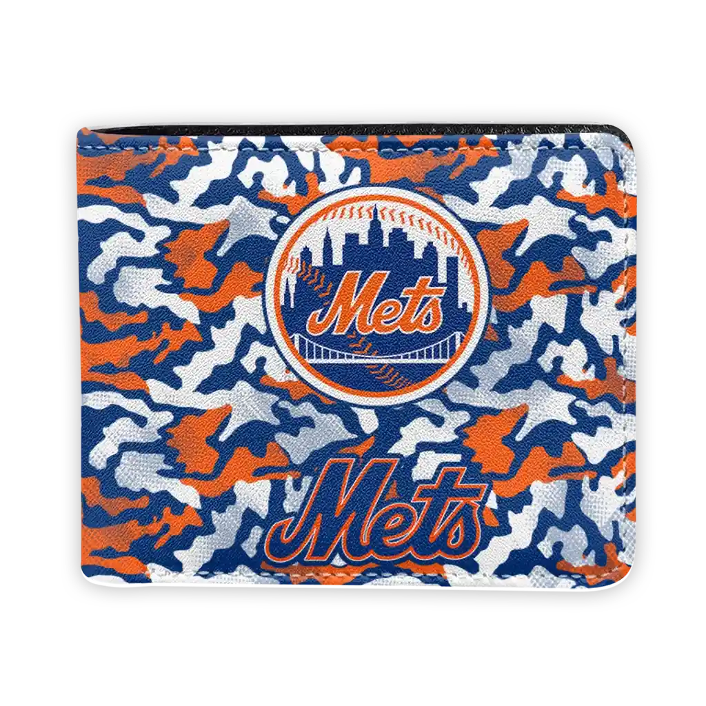 Hit a home run with New York Mets by wearing the New York Mets Camouflage Patches Blue White Wallet. Featuring a bold team design and crafted with premium materials, this durable sports wallet offers plenty of space for your cards, cash, and game-day essentials. With a secure fold-over closure, it’s the perfect accessory for any die-hard fan ready to rep their team, from the dugout to the streets.