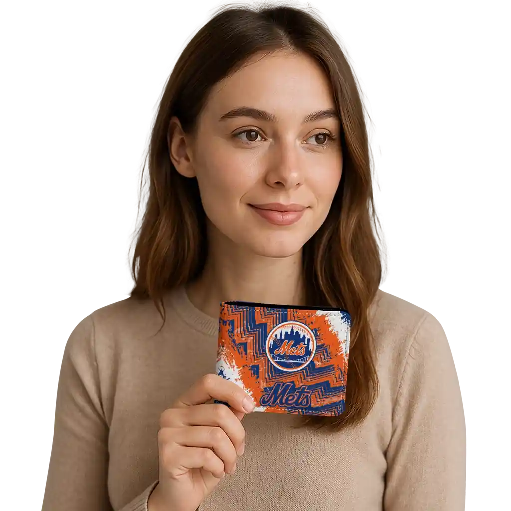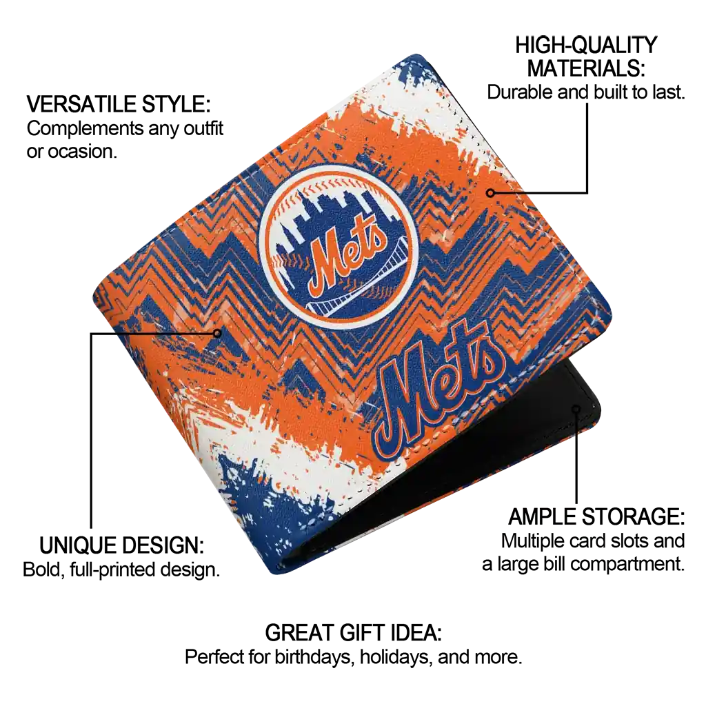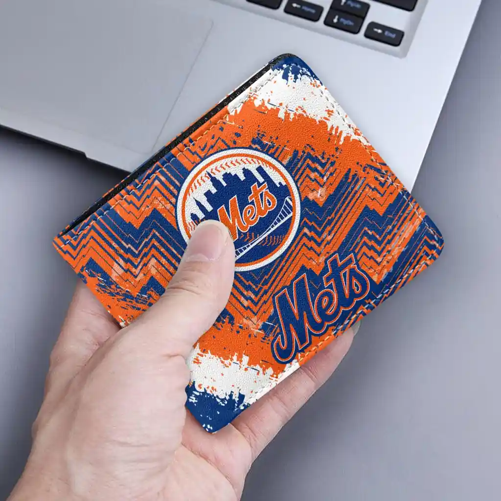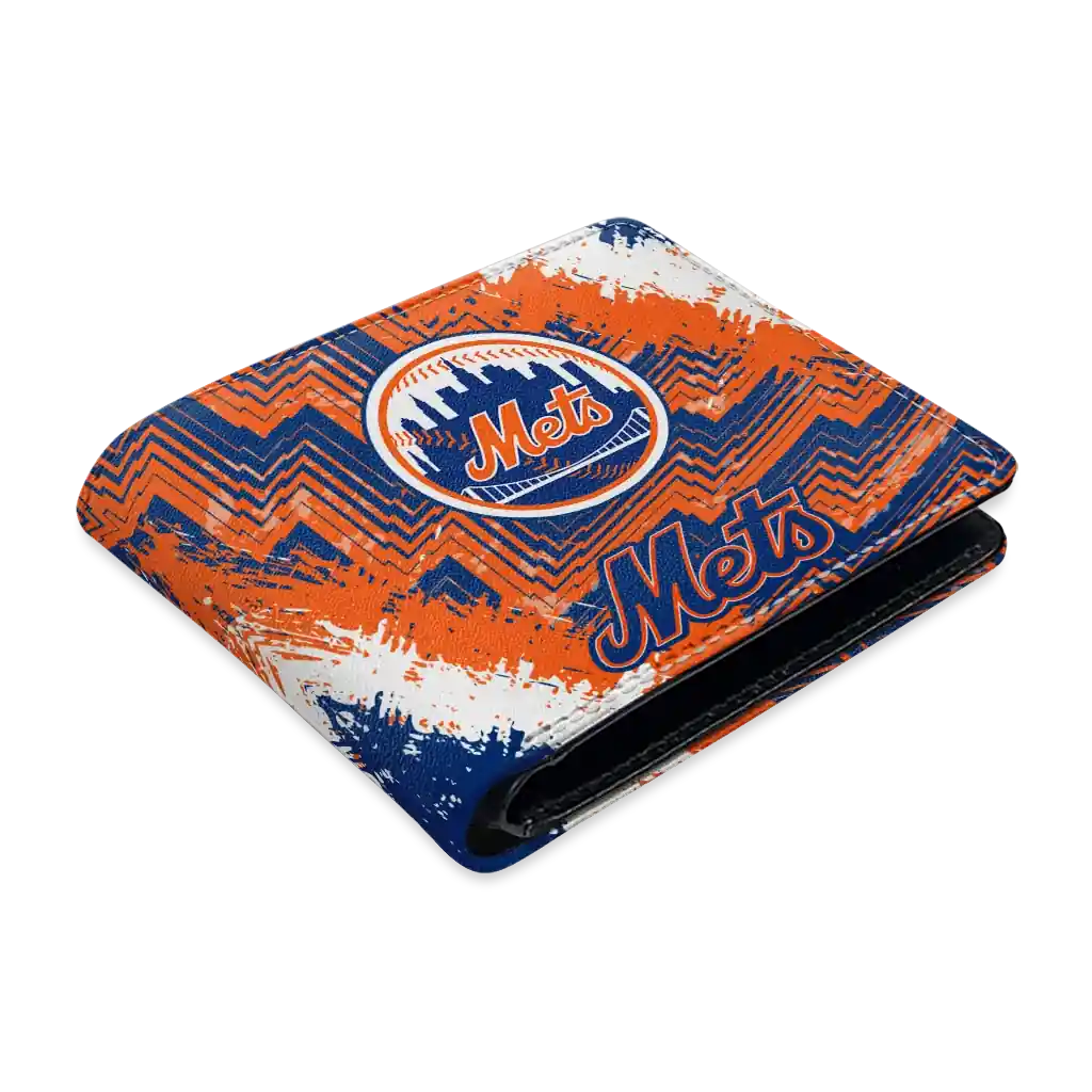 New York Mets Wallet – Custom Textured Pattern Blue Orange
