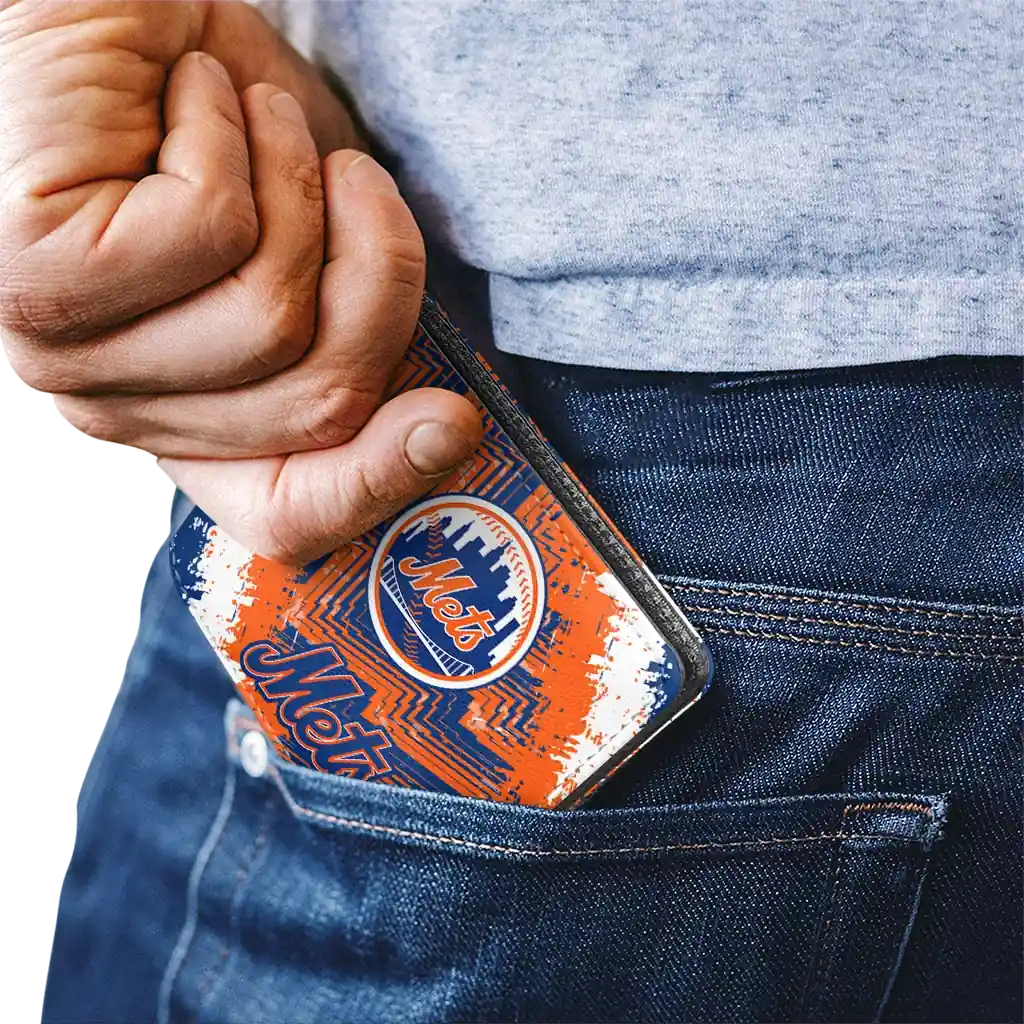 Hit a home run with New York Mets by wearing the New York Mets Blue White Wallet. Featuring a bold team design and crafted with premium materials, this durable sports wallet offers plenty of space for your cards, cash, and game-day essentials. With a secure fold-over closure, it’s the perfect accessory for any die-hard fan ready to rep their team, from the dugout to the streets.