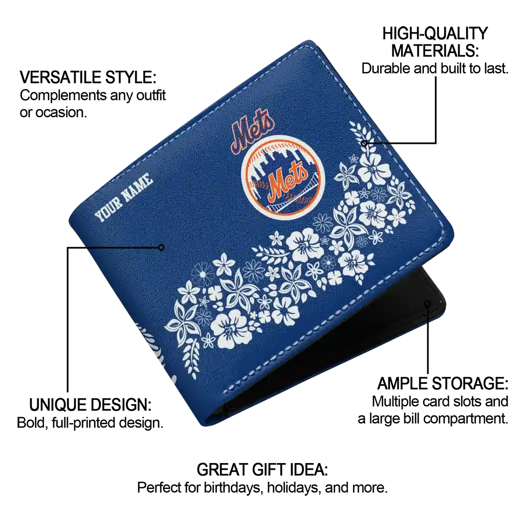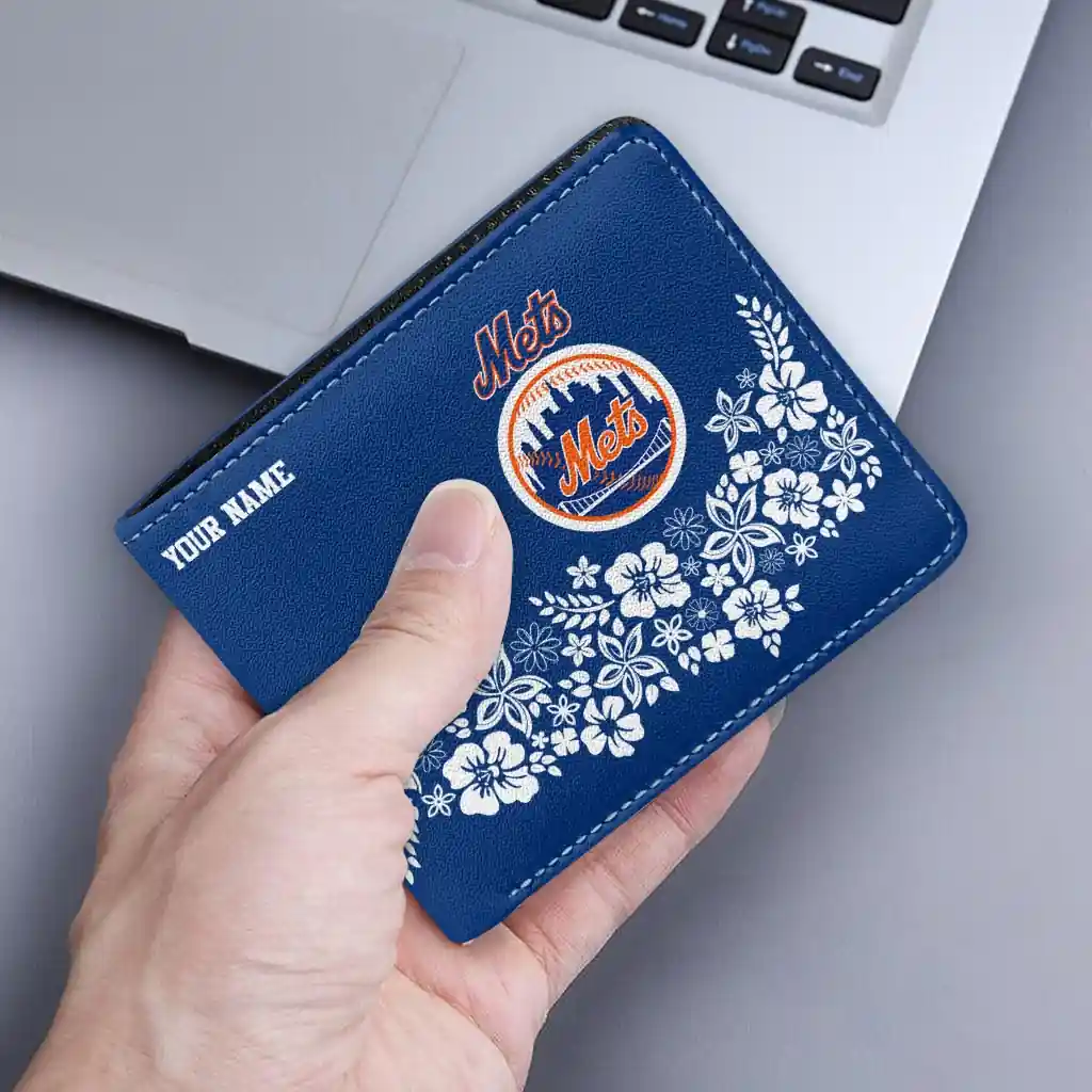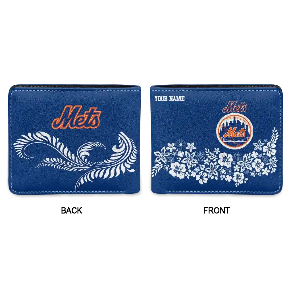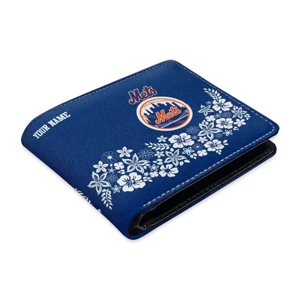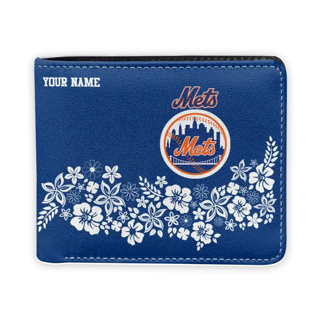 Hit a home run with New York Mets by wearing the Customized New York Mets Floral Cluster Blue White Wallet. Featuring a bold team design and crafted with premium materials, this durable sports wallet offers plenty of space for your cards, cash, and game-day essentials. With a secure fold-over closure, it’s the perfect accessory for any die-hard fan ready to rep their team, from the dugout to the streets.