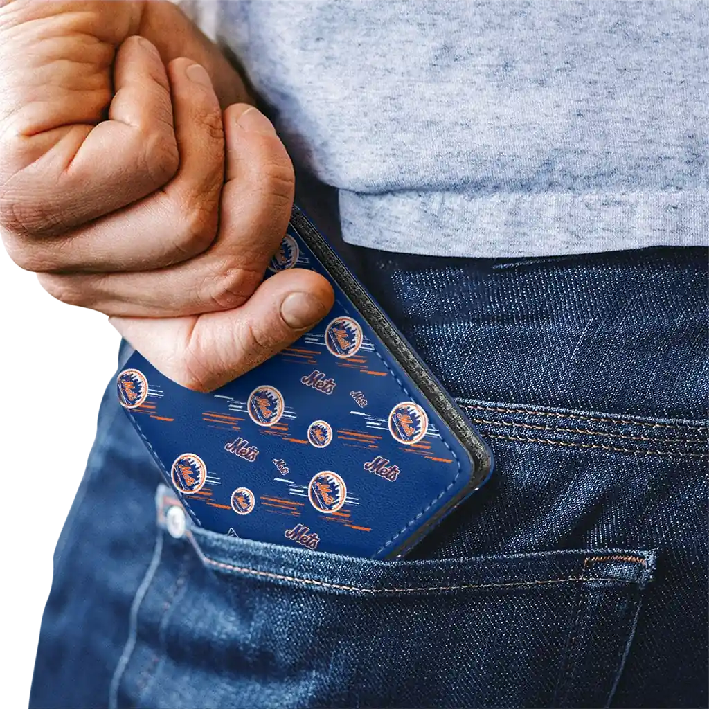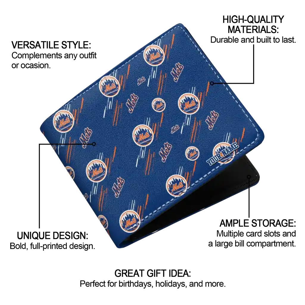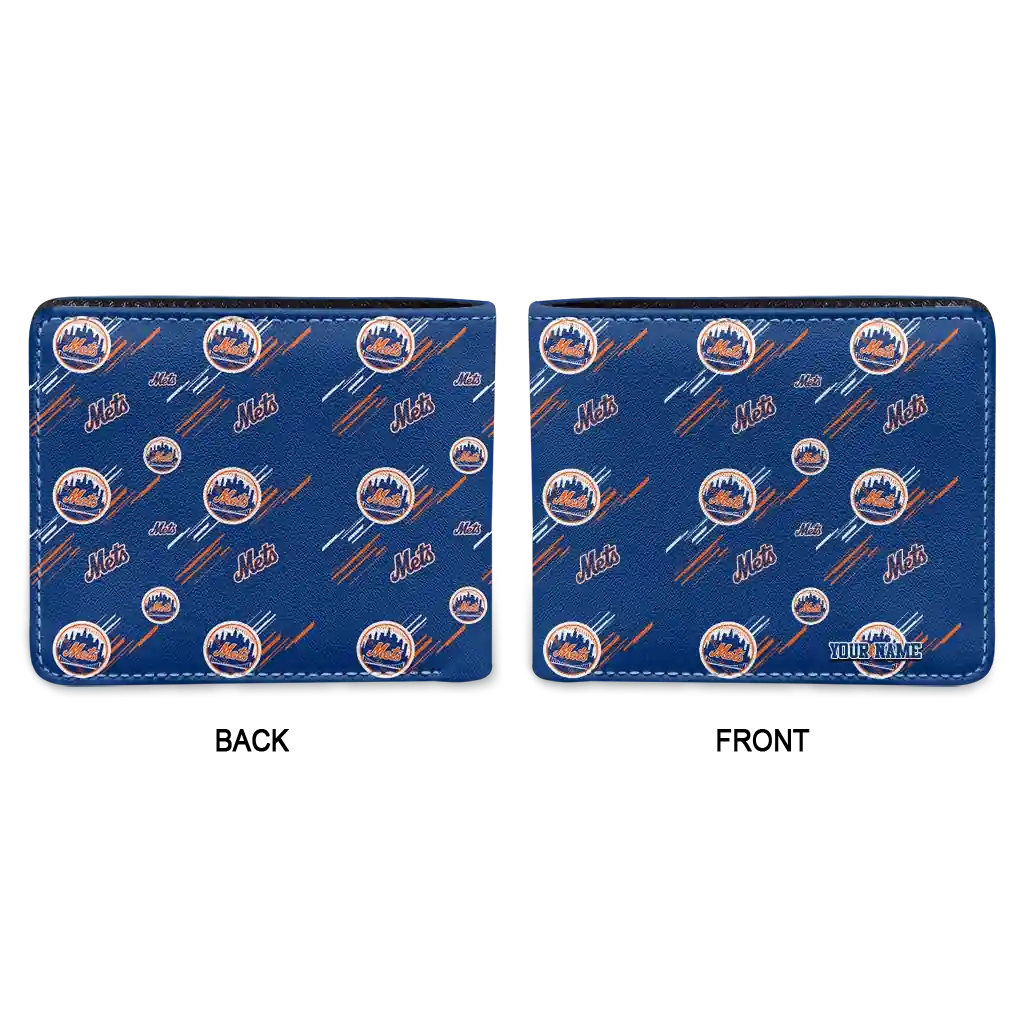 Hit a home run with New York Mets by wearing the Customized New York Mets Streak Motif Blue Wallet. Featuring a bold team design and crafted with premium materials, this durable sports wallet offers plenty of space for your cards, cash, and game-day essentials. With a secure fold-over closure, it’s the perfect accessory for any die-hard fan ready to rep their team, from the dugout to the streets.