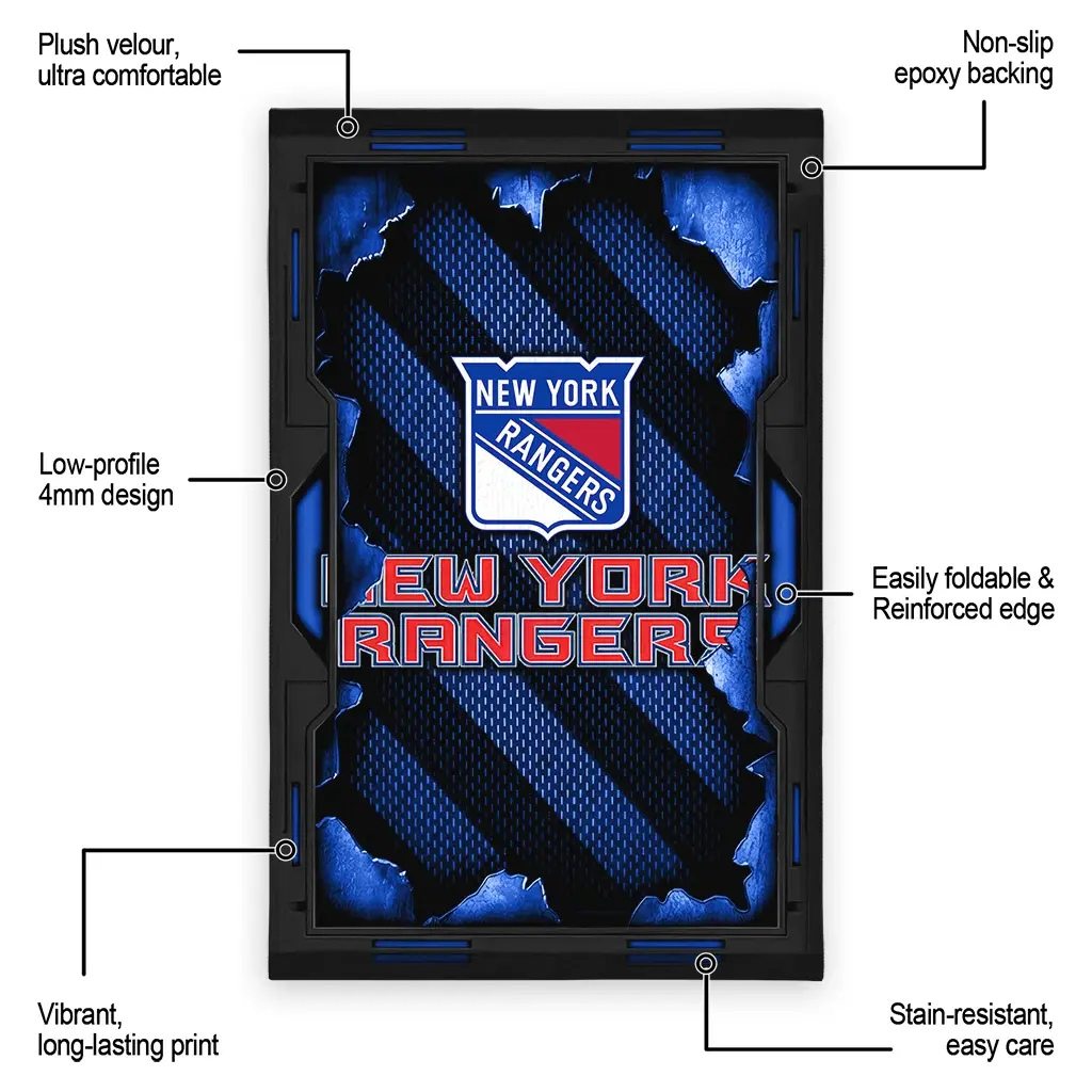 Hit a home run with your favorite team by displaying the New York Rangers Rug – Custom Torn Mesh Blue from MLB Fan Zone. Featuring a bold team design and crafted with plush velour, this durable sports rug offers ultimate comfort for your home or game-day fan cave. With a quality non-slip grip and stay-flat design, it’s the perfect accessory for any die-hard fan ready to rep their team from the living room to the clubhouse.