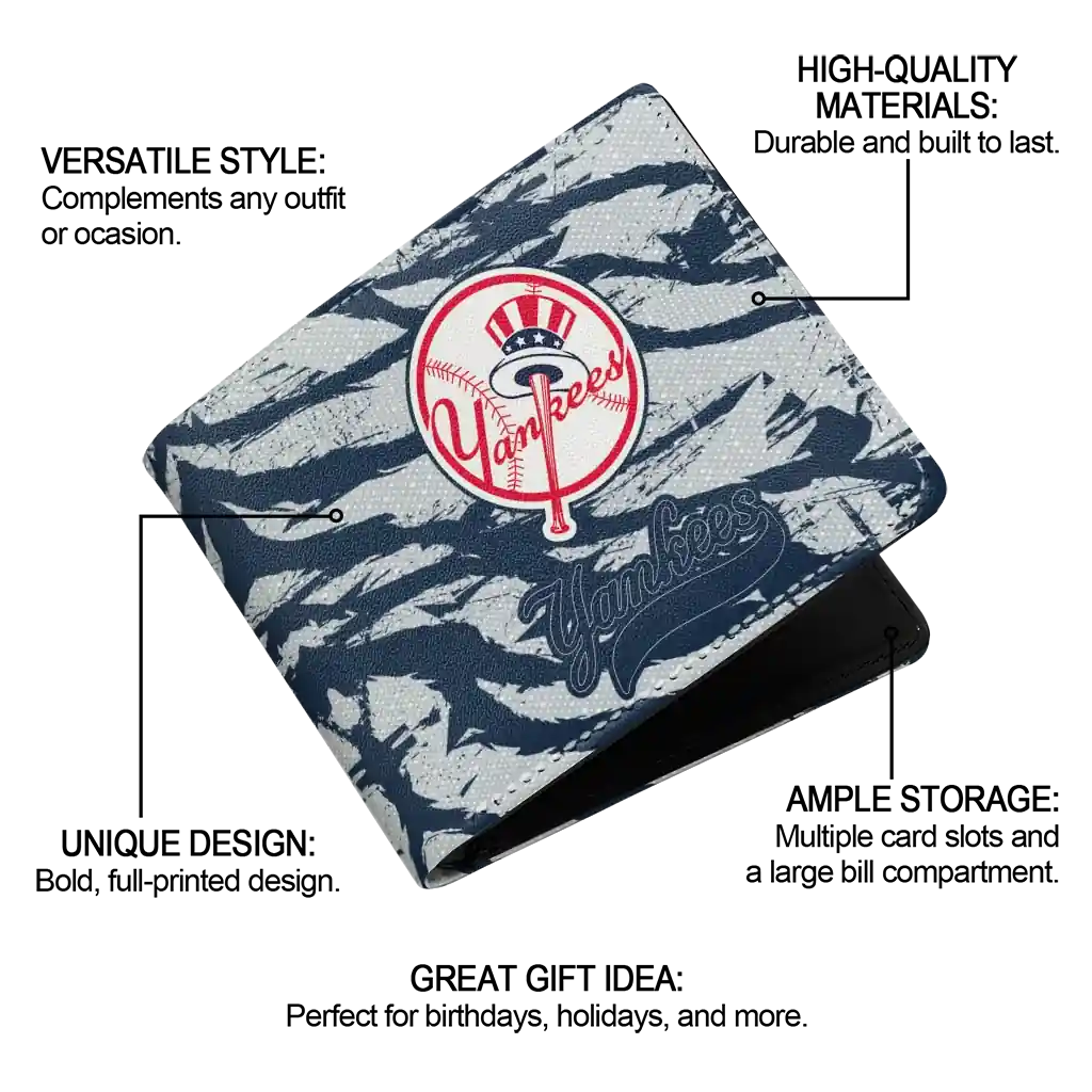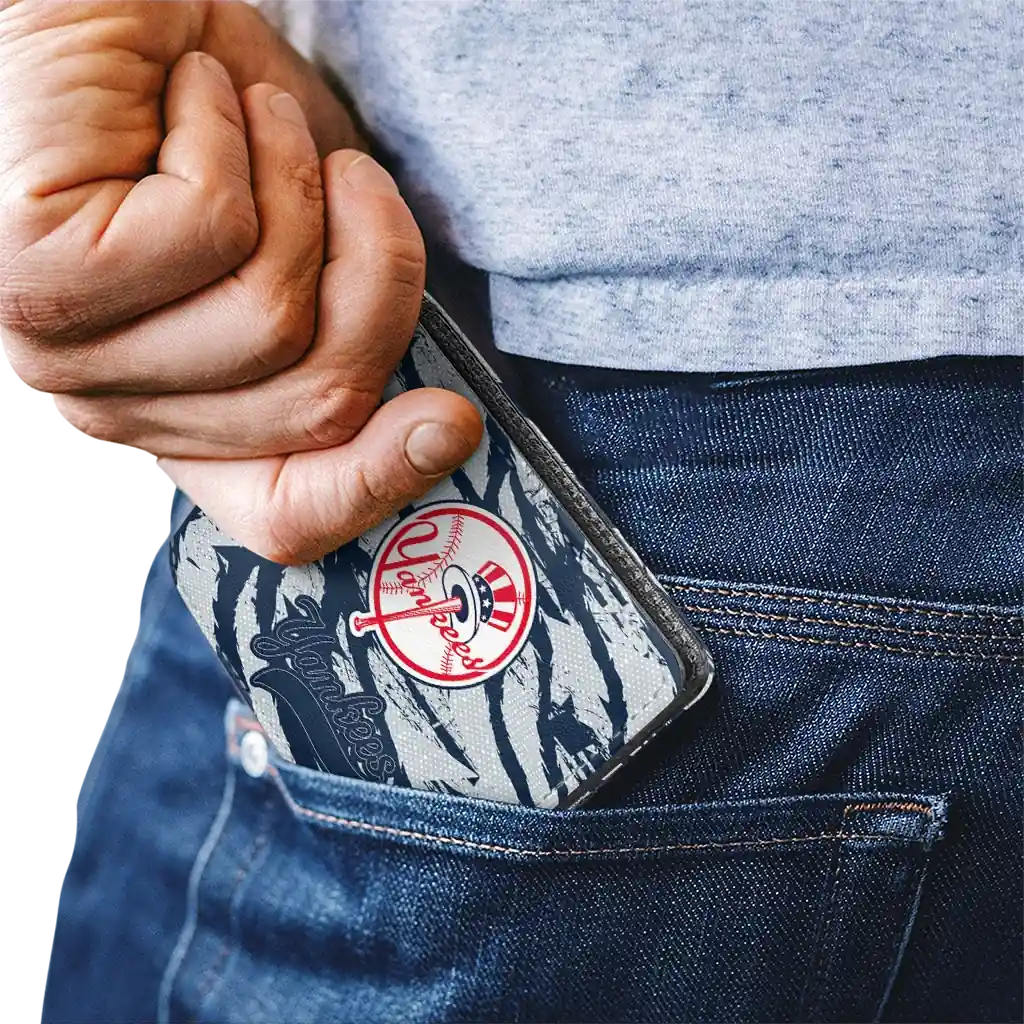 Hit a home run with New York Yankees by wearing the New York Yankees Abstract Stripes Navy Wallet. Featuring a bold team design and crafted with premium materials, this durable sports wallet offers plenty of space for your cards, cash, and game-day essentials. With a secure fold-over closure, it’s the perfect accessory for any die-hard fan ready to rep their team, from the dugout to the streets.