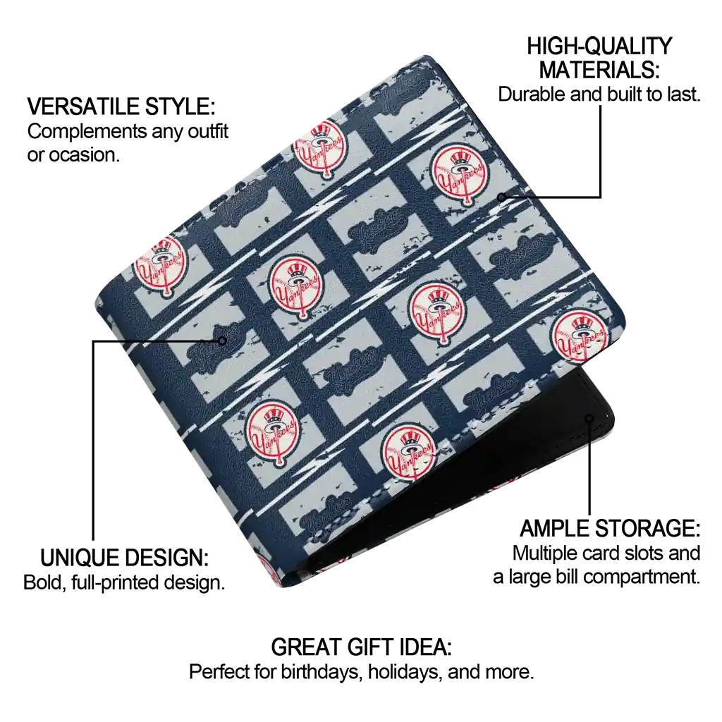 Hit a home run with New York Yankees by wearing the New York Yankees Block Pattern Wallet. Featuring a bold team design and crafted with premium materials, this durable sports wallet offers plenty of space for your cards, cash, and game-day essentials. With a secure fold-over closure, it’s the perfect accessory for any die-hard fan ready to rep their team, from the dugout to the streets.