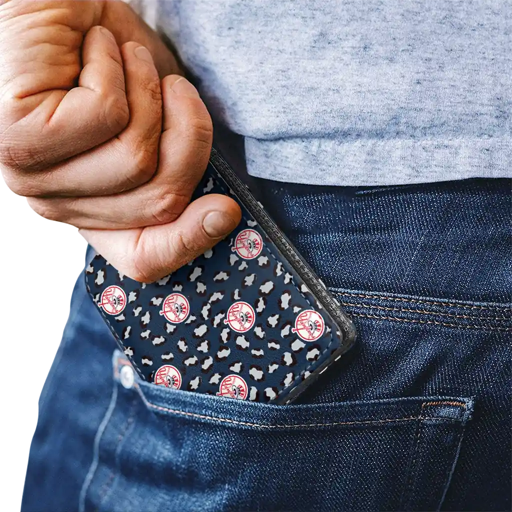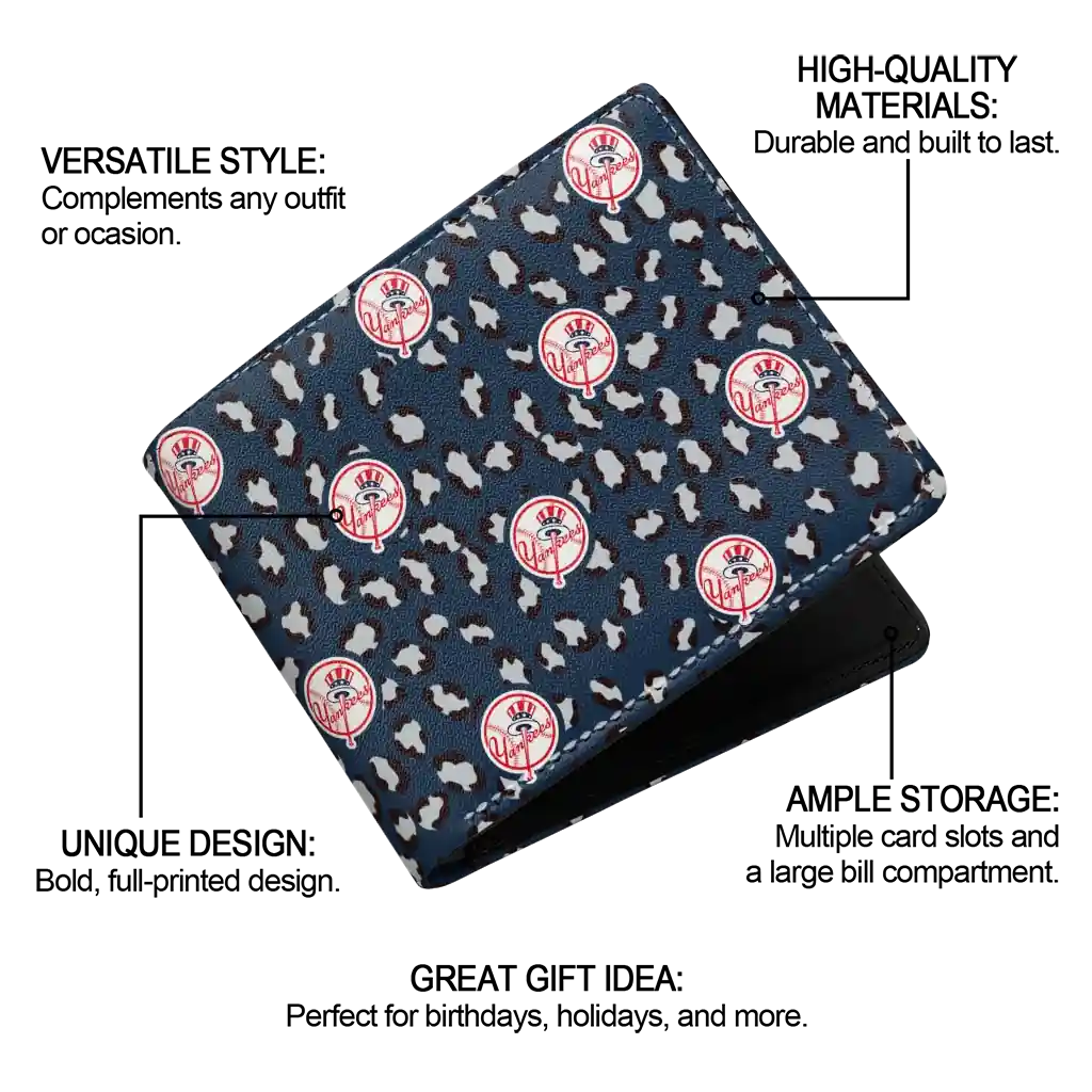 Hit a home run with New York Yankees by wearing the New York Yankees Leopard Texture Navy Wallet. Featuring a bold team design and crafted with premium materials, this durable sports wallet offers plenty of space for your cards, cash, and game-day essentials. With a secure fold-over closure, it’s the perfect accessory for any die-hard fan ready to rep their team, from the dugout to the streets.