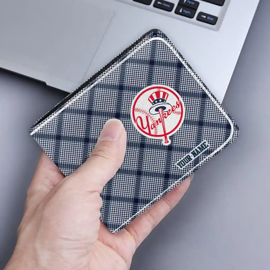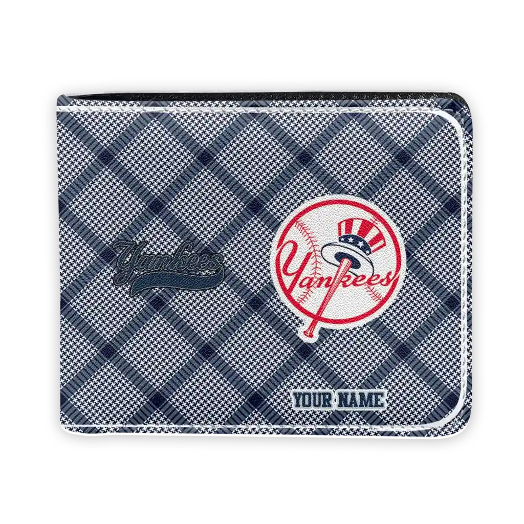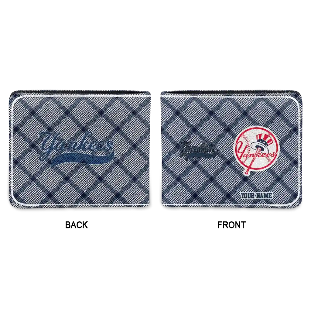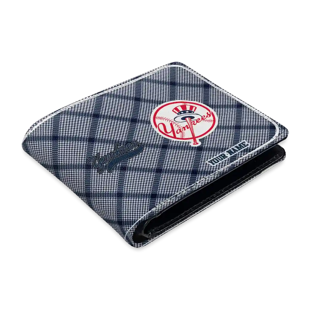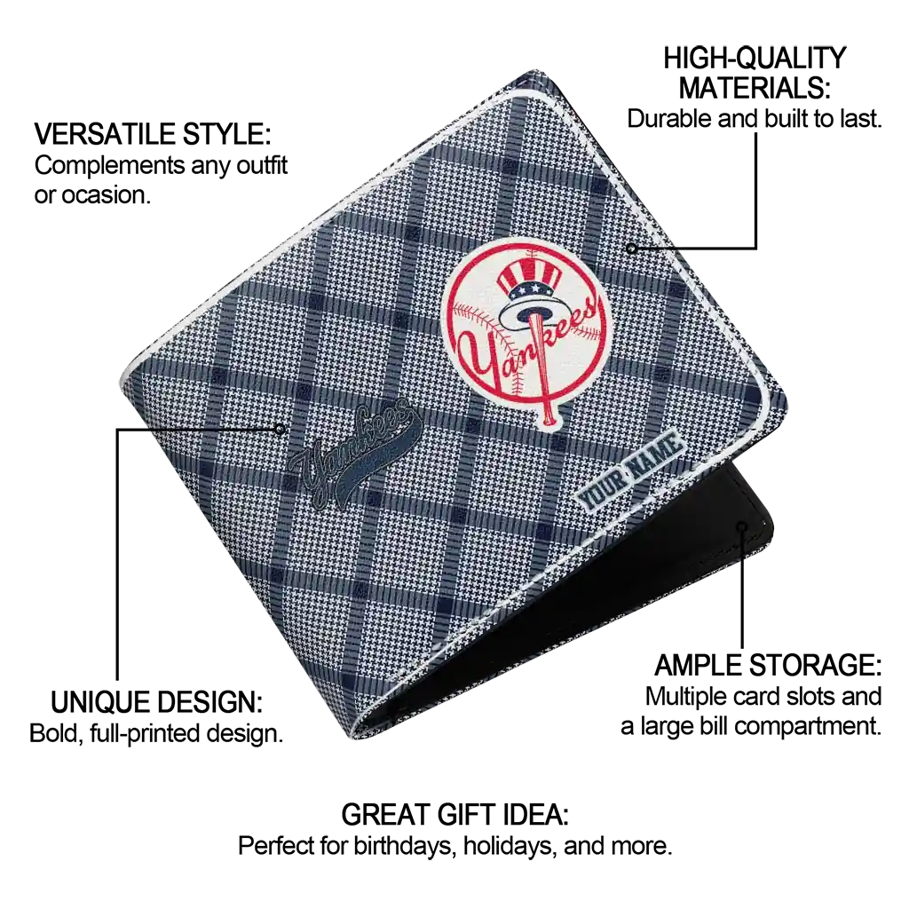 New York Yankees Wallet – Personalized Plaid Grid Navy