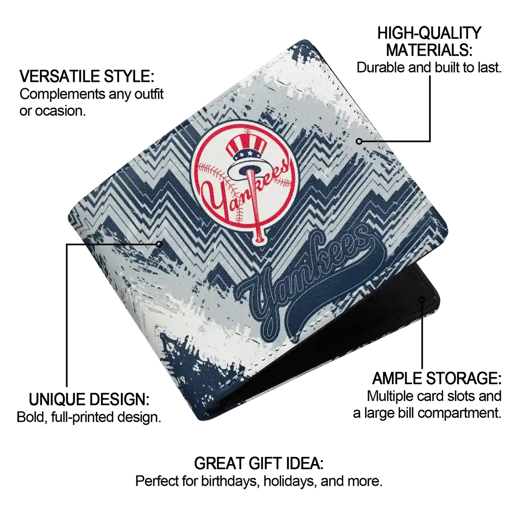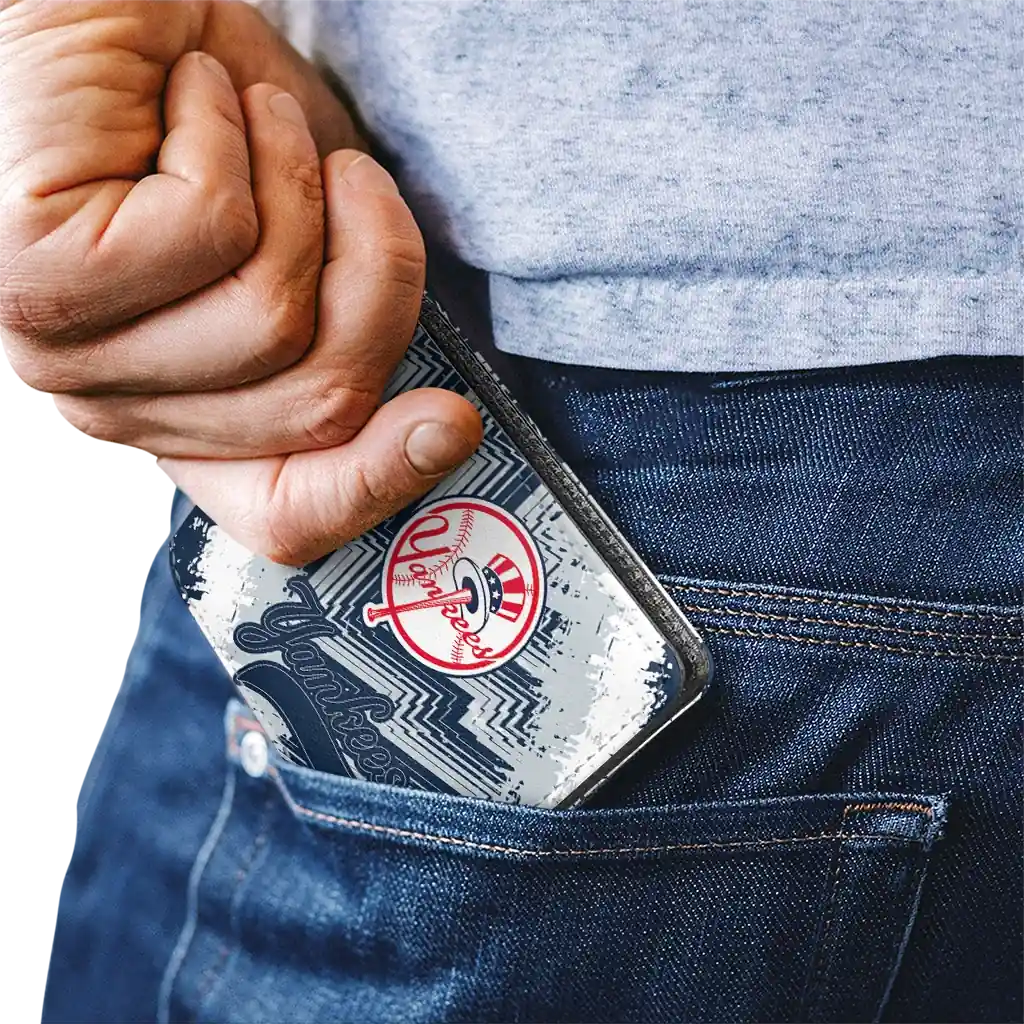 Hit a home run with New York Yankees by wearing the New York Yankees Navy White Wallet. Featuring a bold team design and crafted with premium materials, this durable sports wallet offers plenty of space for your cards, cash, and game-day essentials. With a secure fold-over closure, it’s the perfect accessory for any die-hard fan ready to rep their team, from the dugout to the streets.