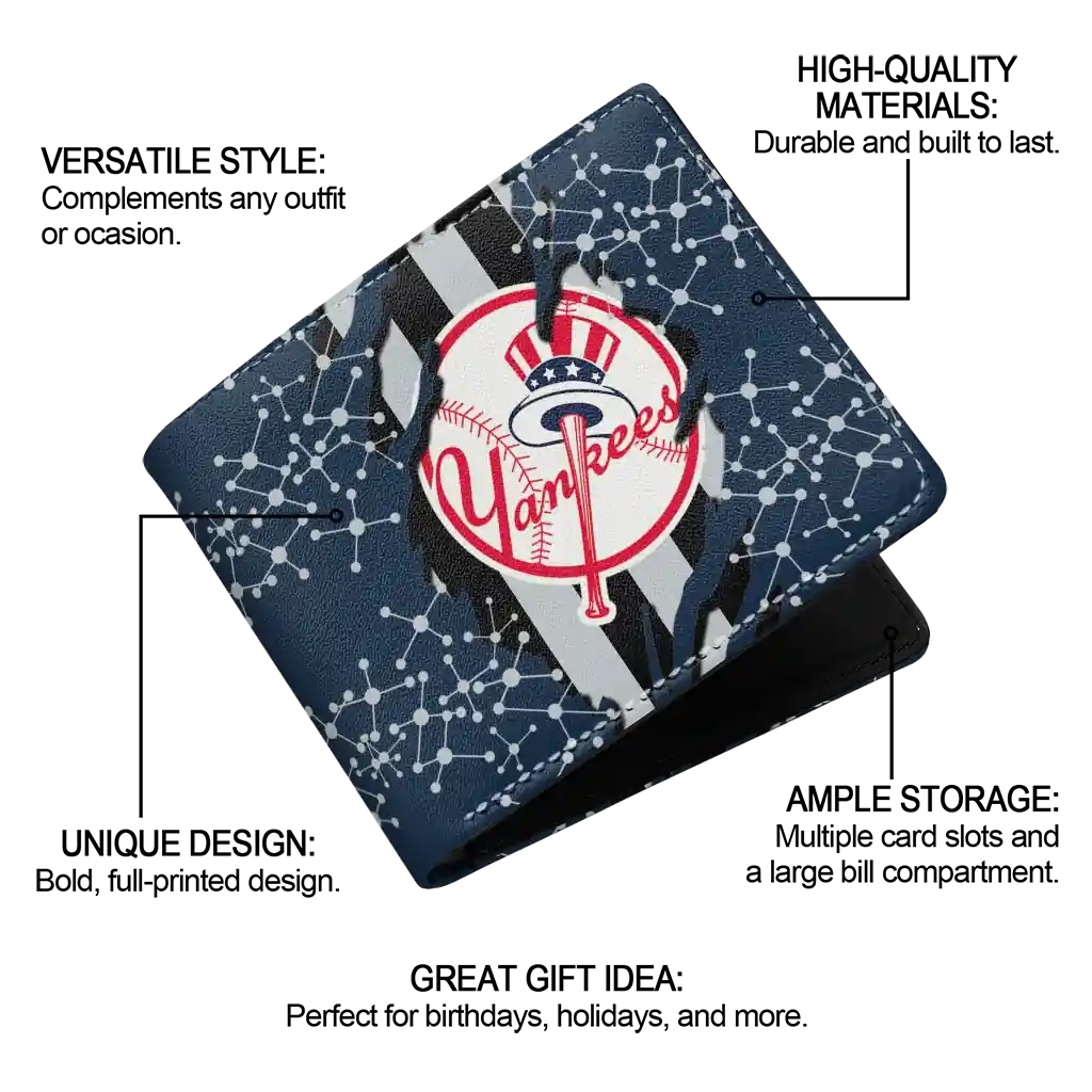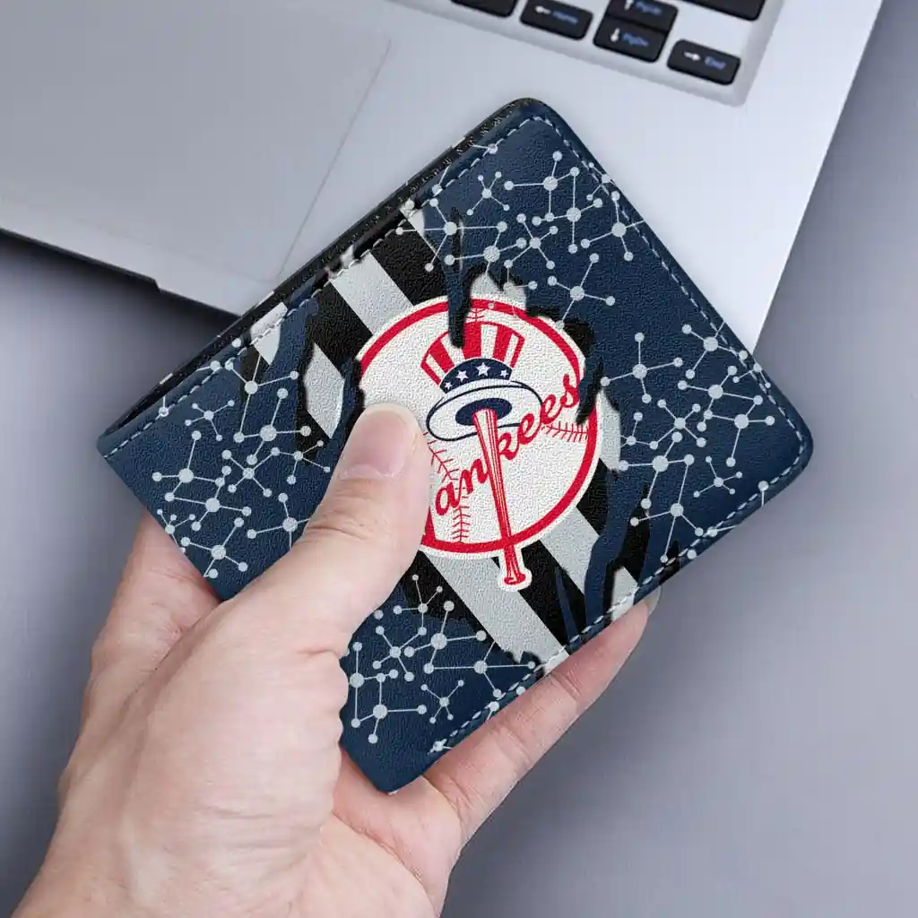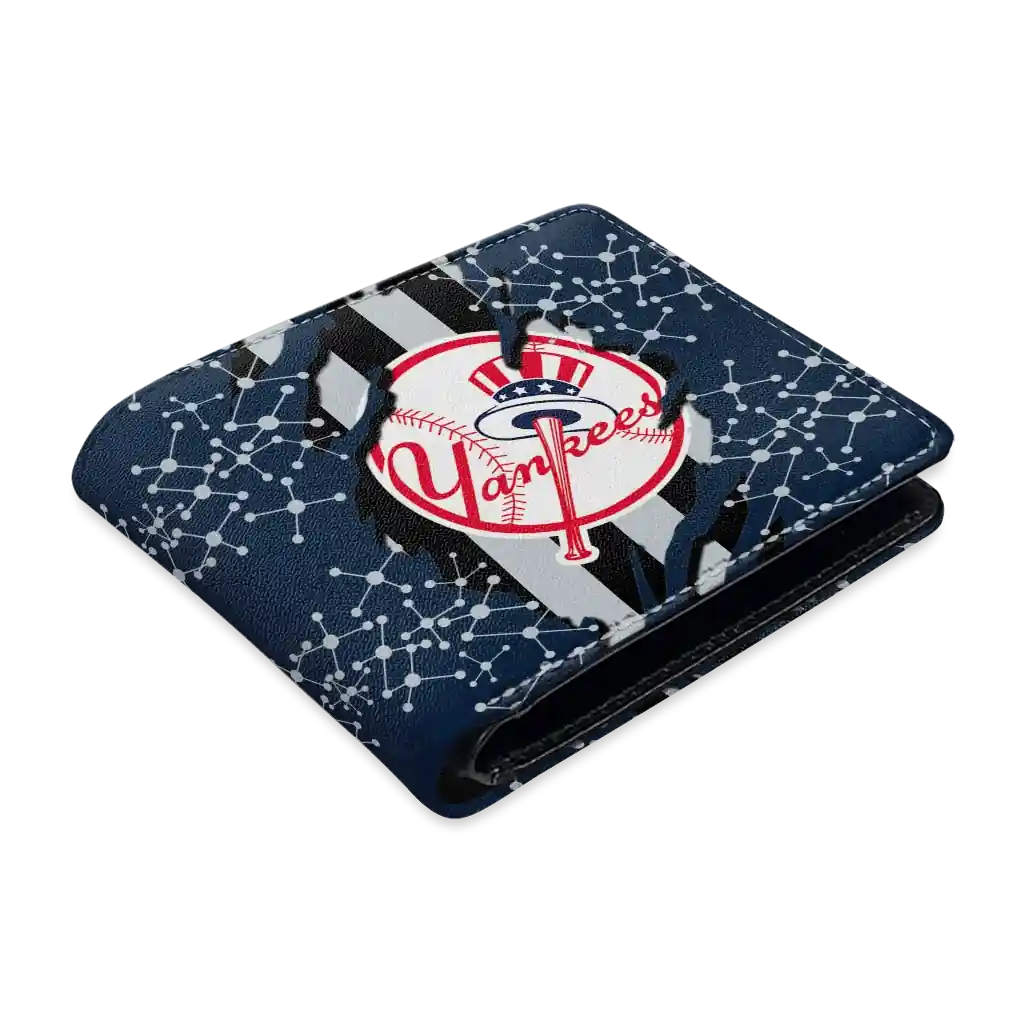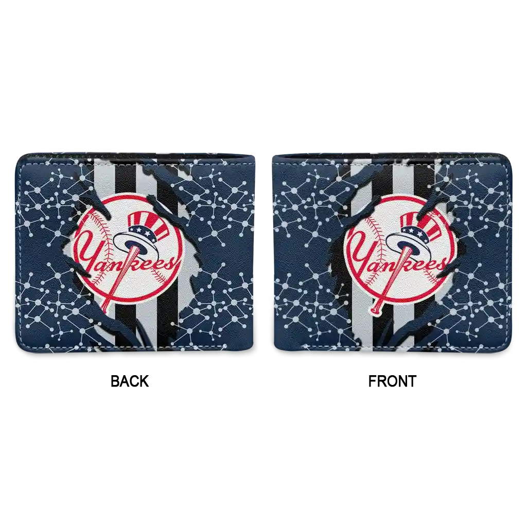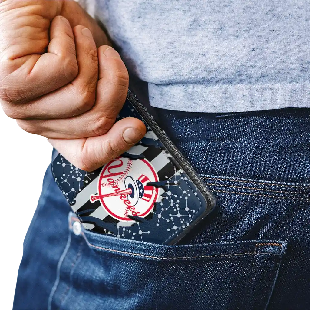 Hit a home run with New York Yankees by wearing the New York Yankees Torn Stripe Chaos Navy Black Wallet. Featuring a bold team design and crafted with premium materials, this durable sports wallet offers plenty of space for your cards, cash, and game-day essentials. With a secure fold-over closure, it’s the perfect accessory for any die-hard fan ready to rep their team, from the dugout to the streets.
