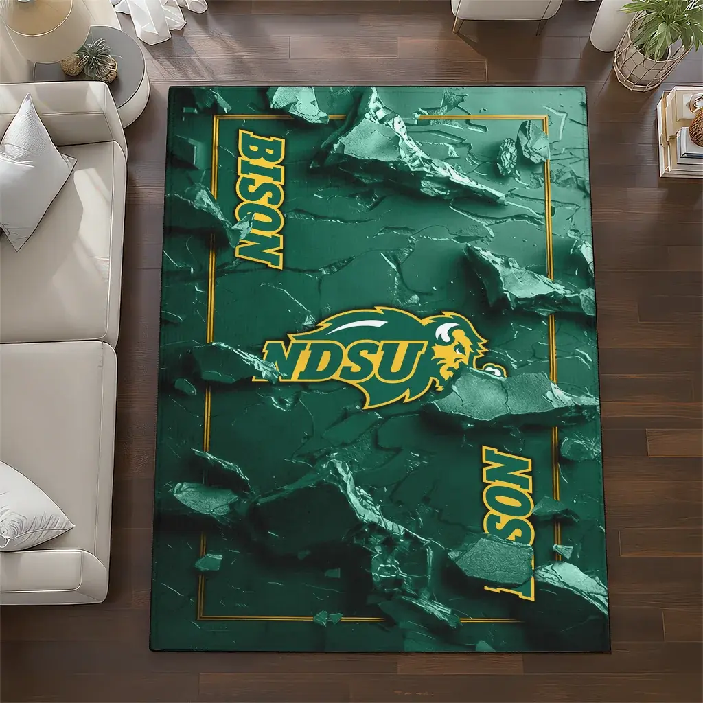 North Dakota State Bison Rug – Cracked Surface Design Green
