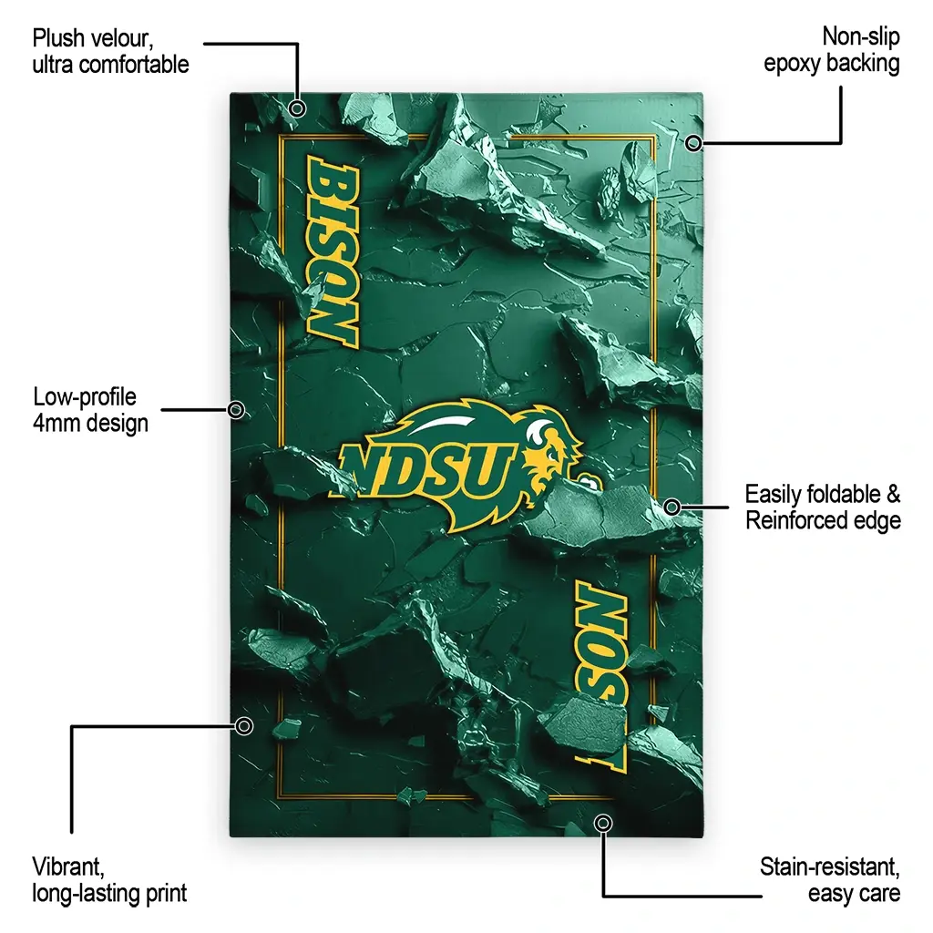 Hit a home run with your favorite team by displaying the North Dakota State Bison Rug – Customized Cracked Surface Design Green from MLB Fan Zone. Featuring a bold team design and crafted with plush velour, this durable sports rug offers ultimate comfort for your home or game-day fan cave. With a quality non-slip grip and stay-flat design, it’s the perfect accessory for any die-hard fan ready to rep their team from the living room to the clubhouse.