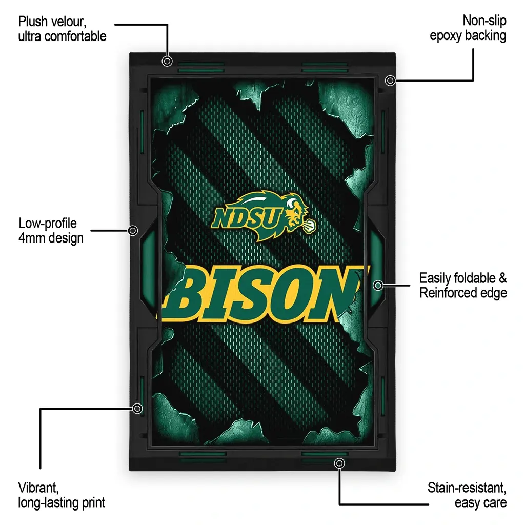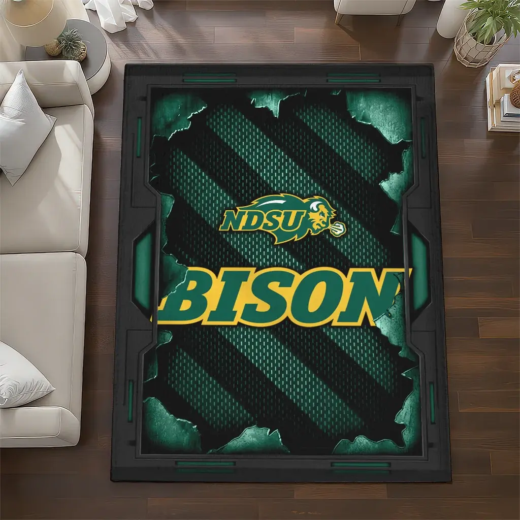 North Dakota State Bison Rug – Torn Mesh Green
