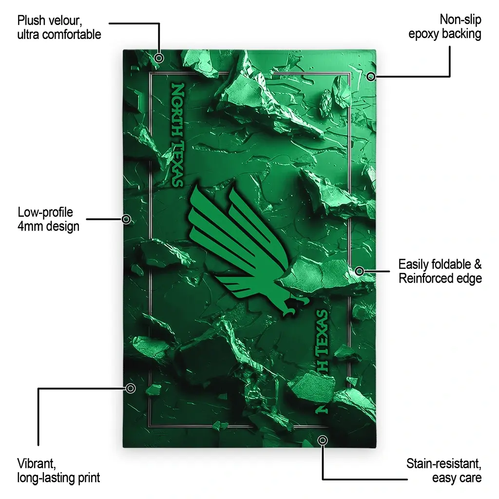 Hit a home run with your favorite team by displaying the North Texas Mean Green Rug – Customized Cracked Surface Design Green from MLB Fan Zone. Featuring a bold team design and crafted with plush velour, this durable sports rug offers ultimate comfort for your home or game-day fan cave. With a quality non-slip grip and stay-flat design, it’s the perfect accessory for any die-hard fan ready to rep their team from the living room to the clubhouse.