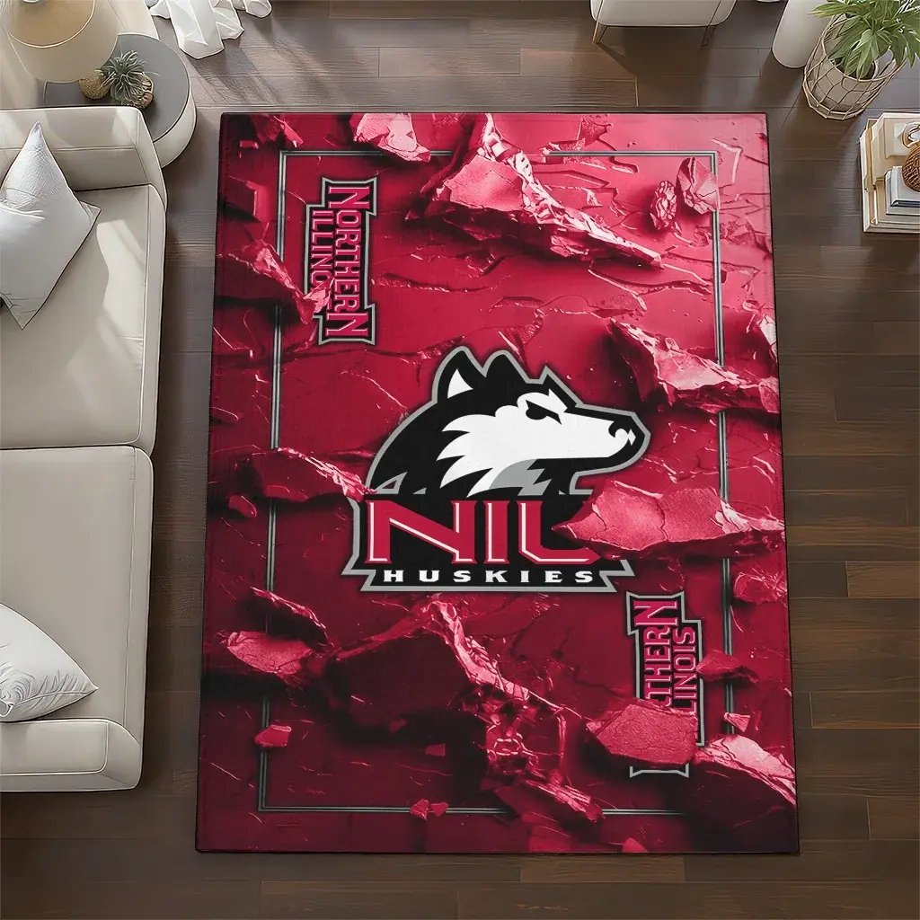 Northern Illinois Huskies Rug – Cracked Surface Design Red