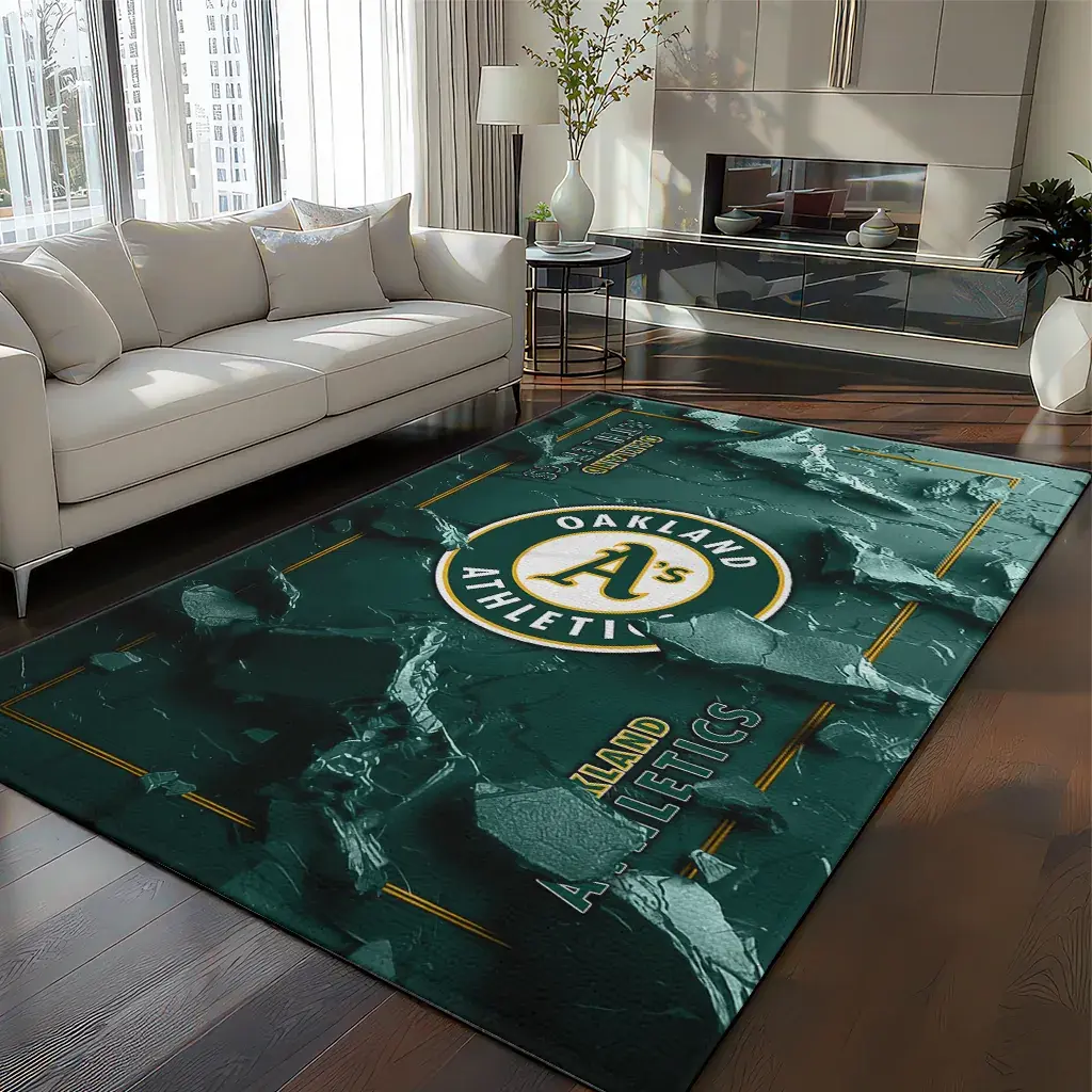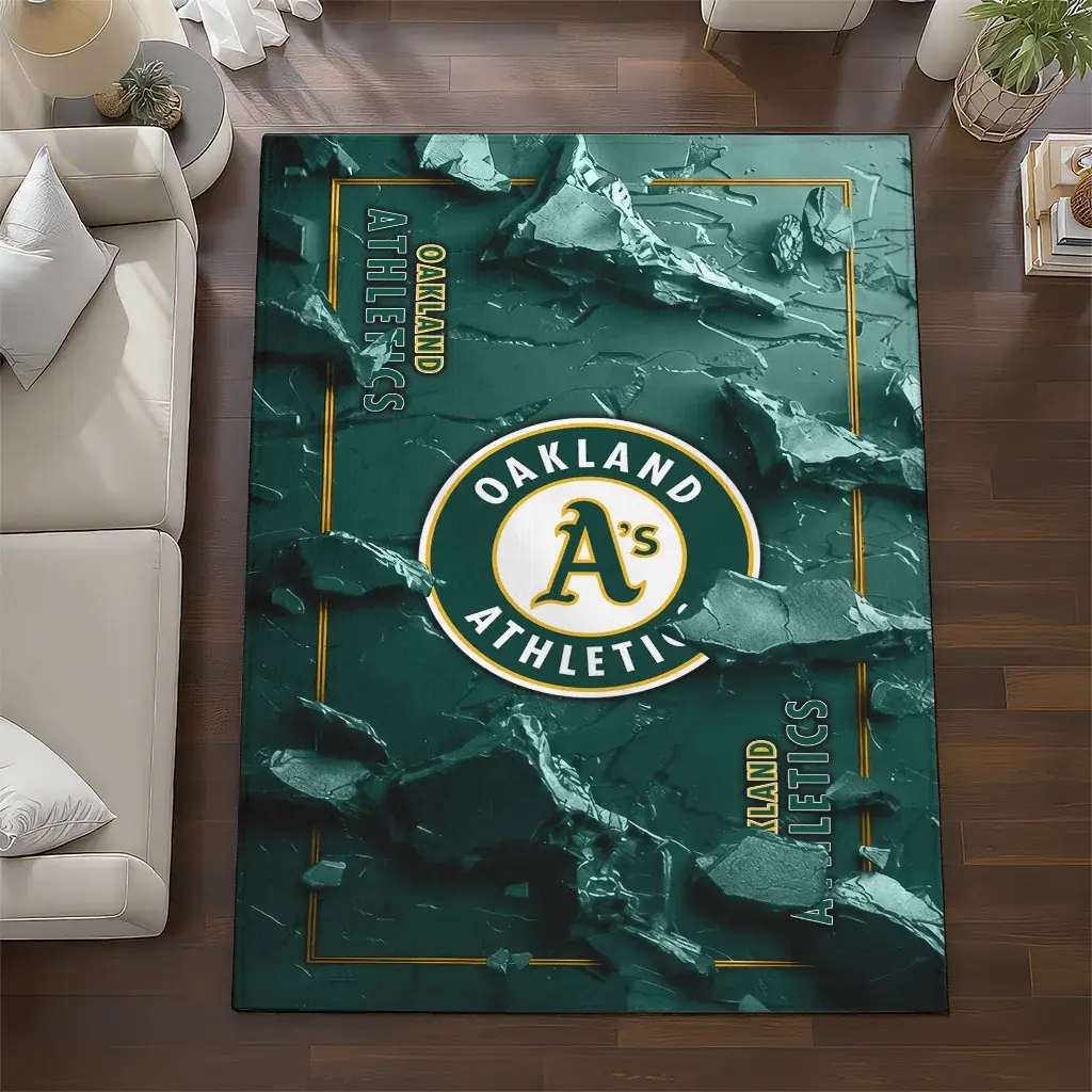 Oakland Athletics Rug – Cracked Surface Design Green