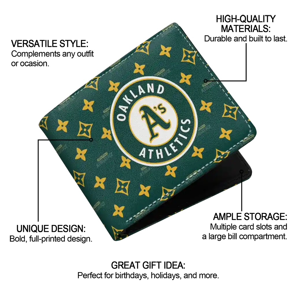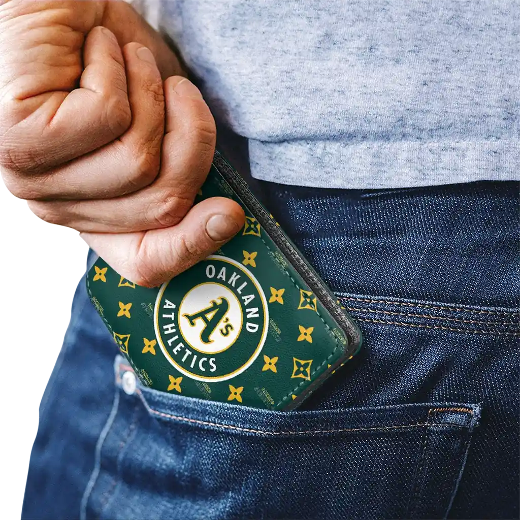 Hit a home run with Oakland Athletics by wearing the Oakland Athletics Iconic Monogram Bloom Green Wallet. Featuring a bold team design and crafted with premium materials, this durable sports wallet offers plenty of space for your cards, cash, and game-day essentials. With a secure fold-over closure, it’s the perfect accessory for any die-hard fan ready to rep their team, from the dugout to the streets.