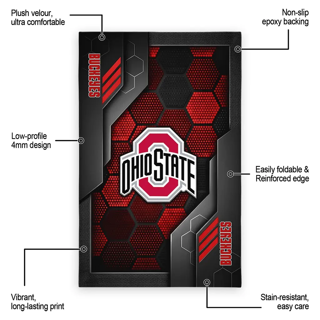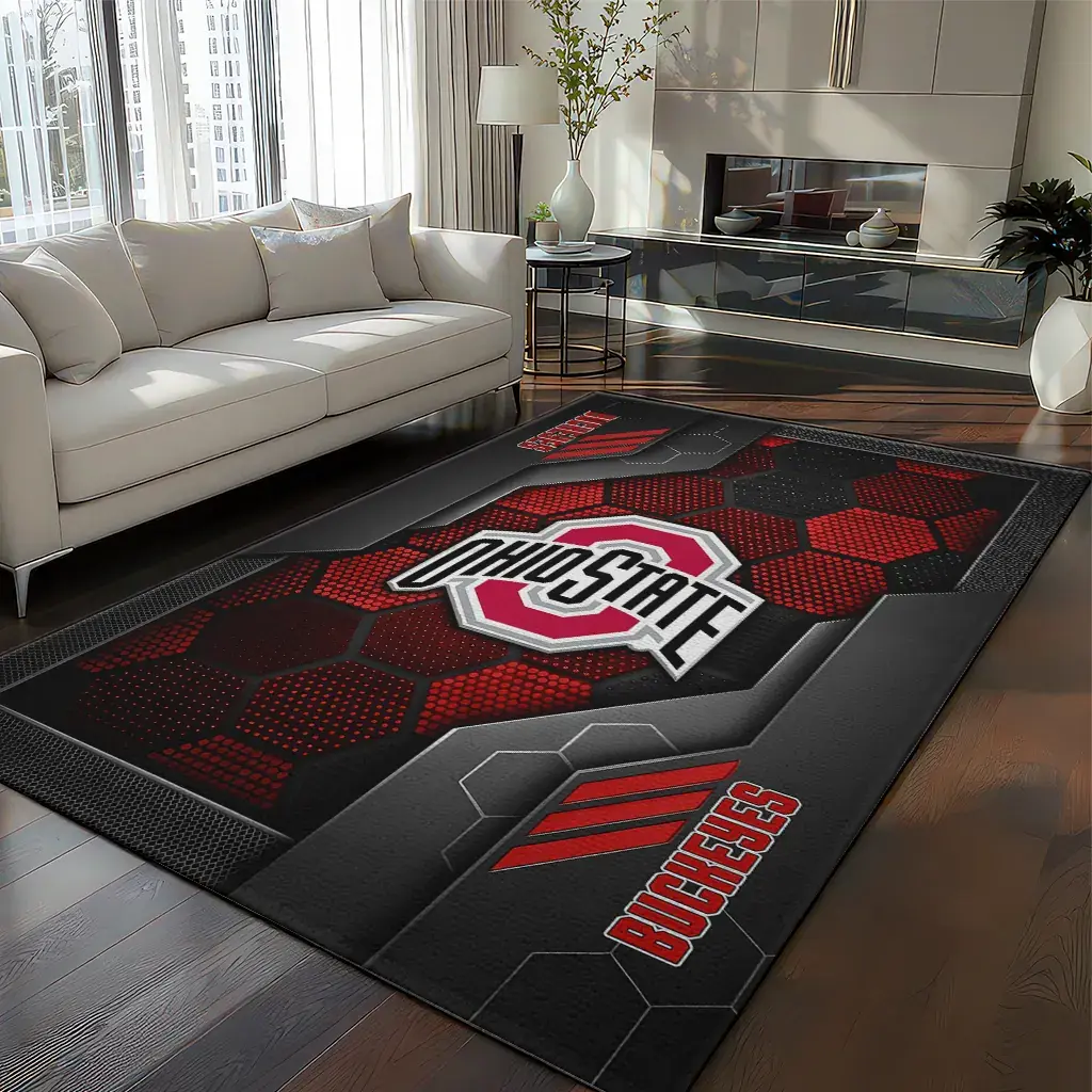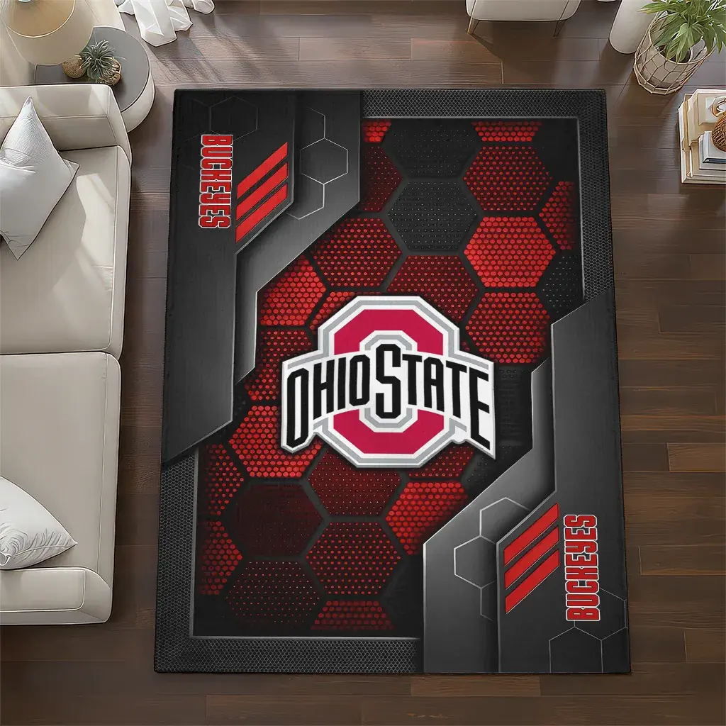 Ohio State Buckeyes Rug – Hexagonal Grid Pattern Scarlet