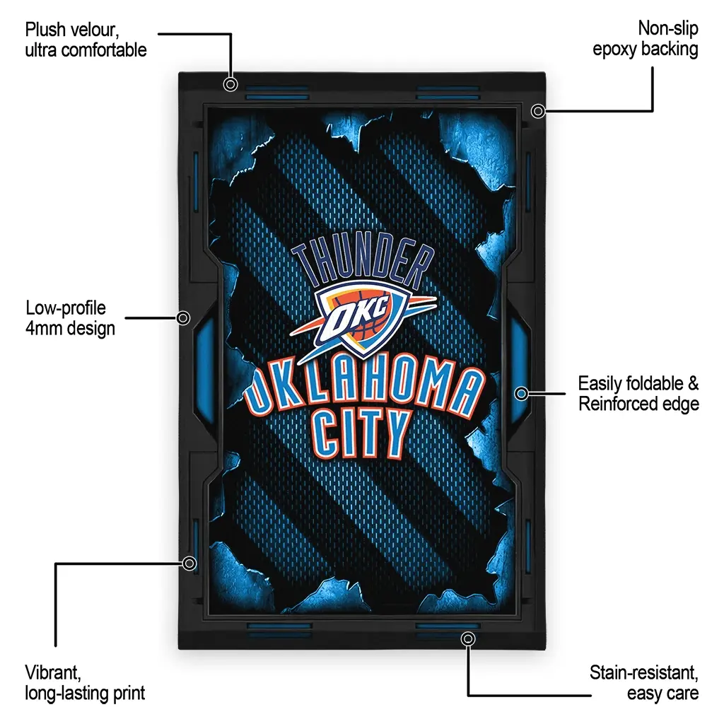 Hit a home run with your favorite team by displaying the Oklahoma City Thunder Rug – Custom Torn Mesh Blue from MLB Fan Zone. Featuring a bold team design and crafted with plush velour, this durable sports rug offers ultimate comfort for your home or game-day fan cave. With a quality non-slip grip and stay-flat design, it’s the perfect accessory for any die-hard fan ready to rep their team from the living room to the clubhouse.