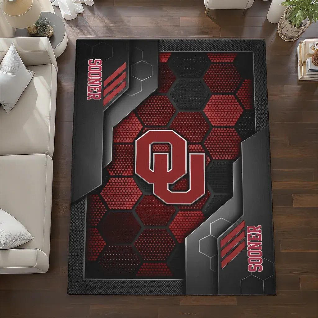 Oklahoma Sooners Rug – Hexagonal Grid Pattern Crimson