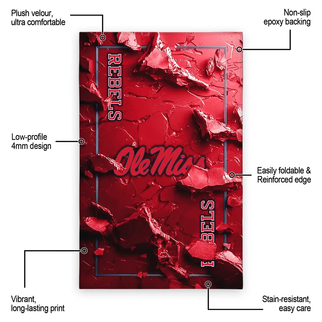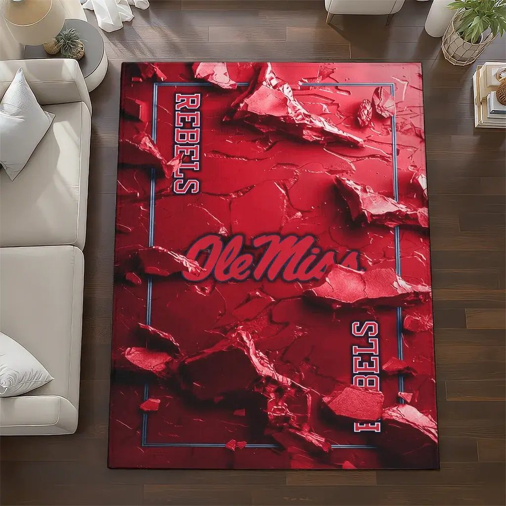 Ole Miss Rebels Rug – Cracked Surface Design Red