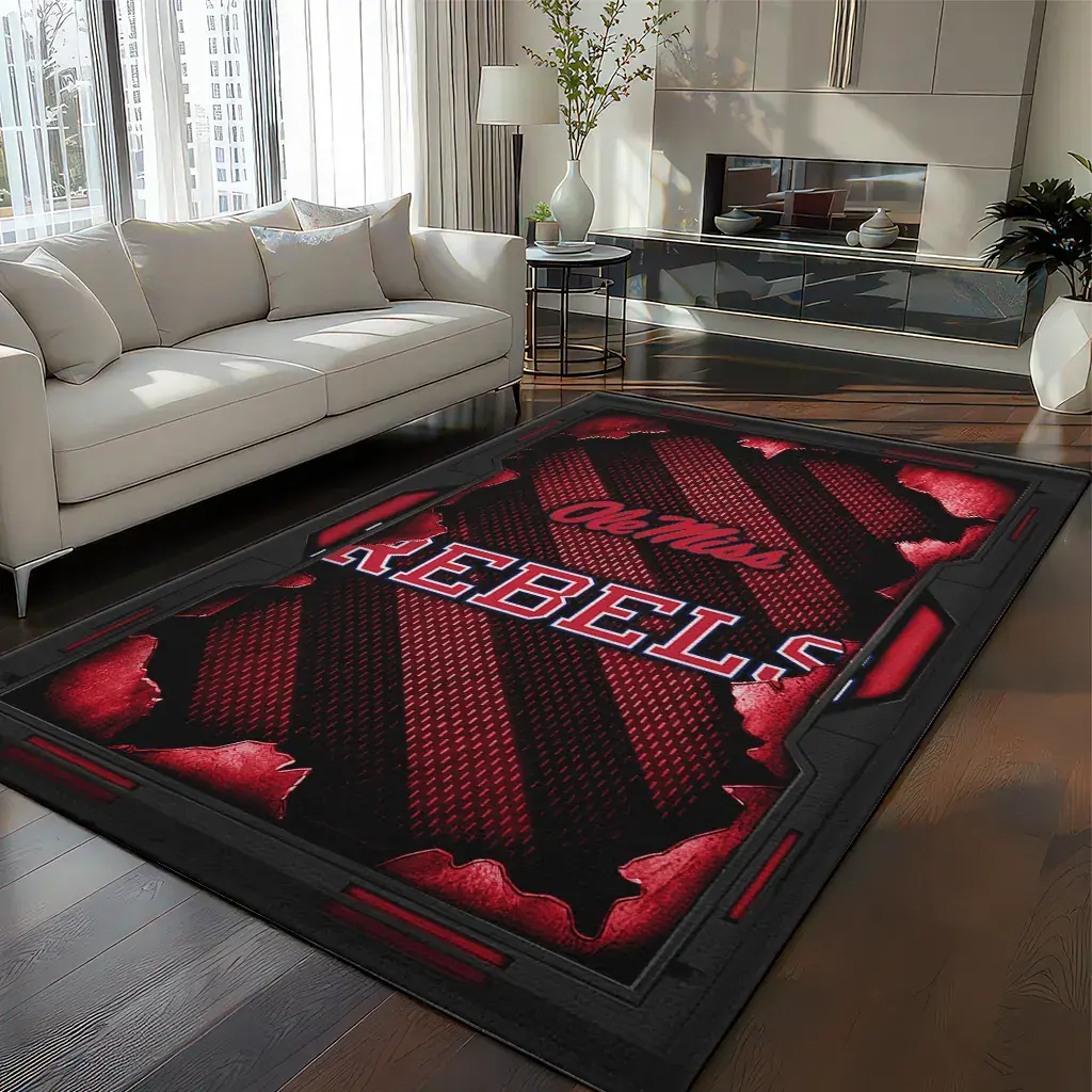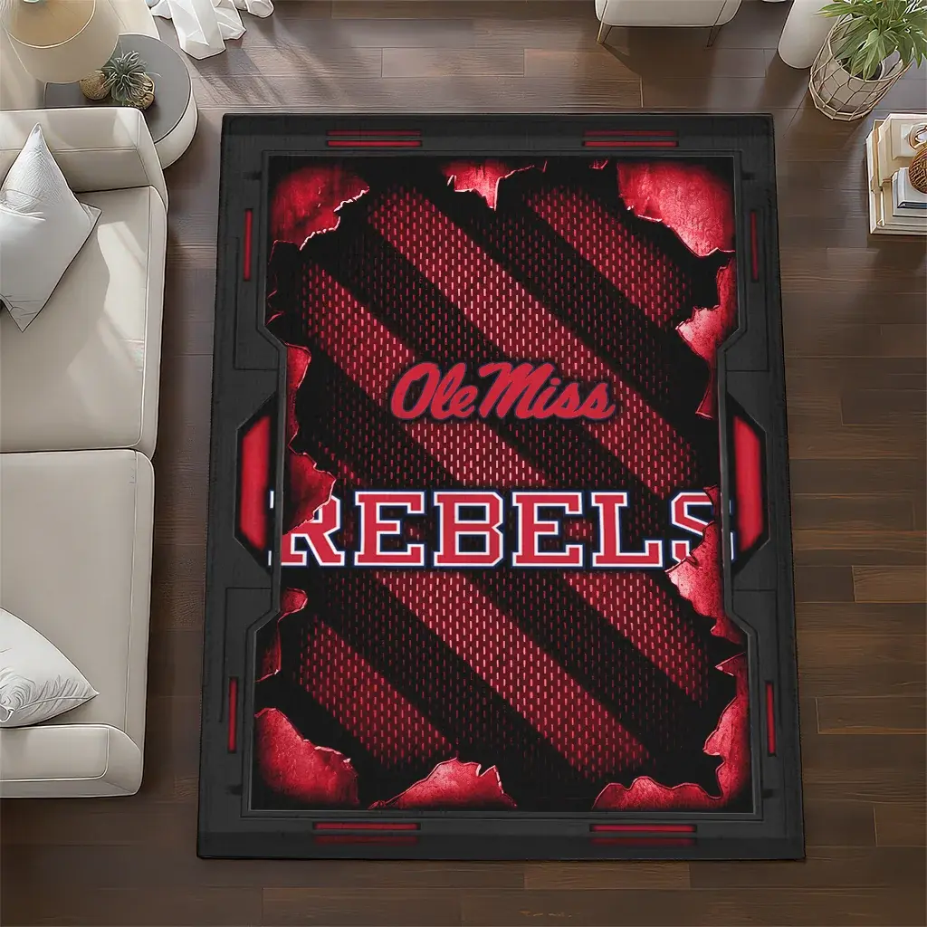 Ole Miss Rebels Rug – Torn Mesh Red