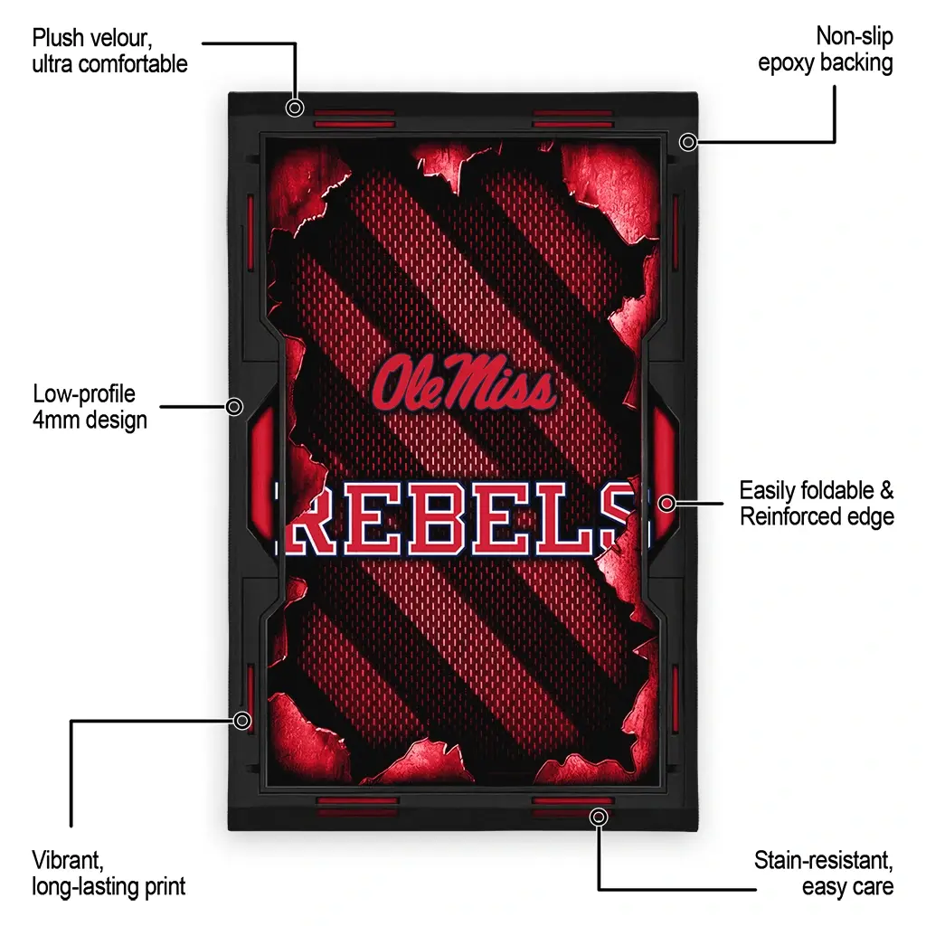 Hit a home run with your favorite team by displaying the Ole Miss Rebels Rug – Custom Torn Mesh Red from MLB Fan Zone. Featuring a bold team design and crafted with plush velour, this durable sports rug offers ultimate comfort for your home or game-day fan cave. With a quality non-slip grip and stay-flat design, it’s the perfect accessory for any die-hard fan ready to rep their team from the living room to the clubhouse.