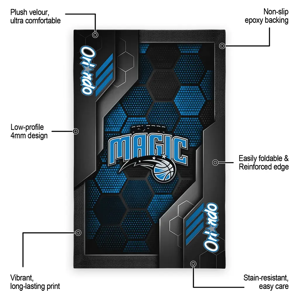 Hit a home run with your favorite team by displaying the Orlando Magic Rug – Customized Hexagonal Grid Pattern Blue from MLB Fan Zone. Featuring a bold team design and crafted with plush velour, this durable sports rug offers ultimate comfort for your home or game-day fan cave. With a quality non-slip grip and stay-flat design, it’s the perfect accessory for any die-hard fan ready to rep their team from the living room to the clubhouse.