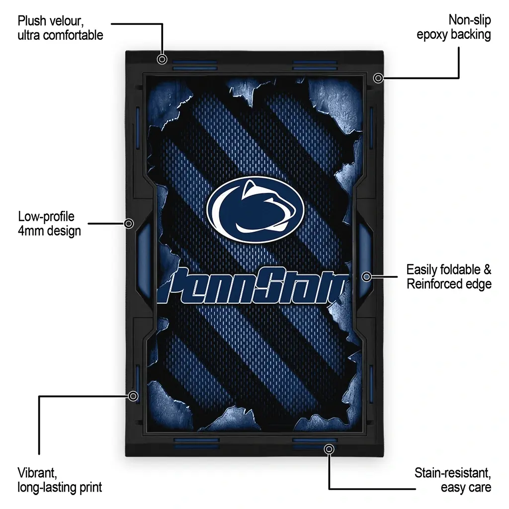Hit a home run with your favorite team by displaying the Penn State Nittany Lions Rug – Customized Torn Mesh Blue from MLB Fan Zone. Featuring a bold team design and crafted with plush velour, this durable sports rug offers ultimate comfort for your home or game-day fan cave. With a quality non-slip grip and stay-flat design, it’s the perfect accessory for any die-hard fan ready to rep their team from the living room to the clubhouse.