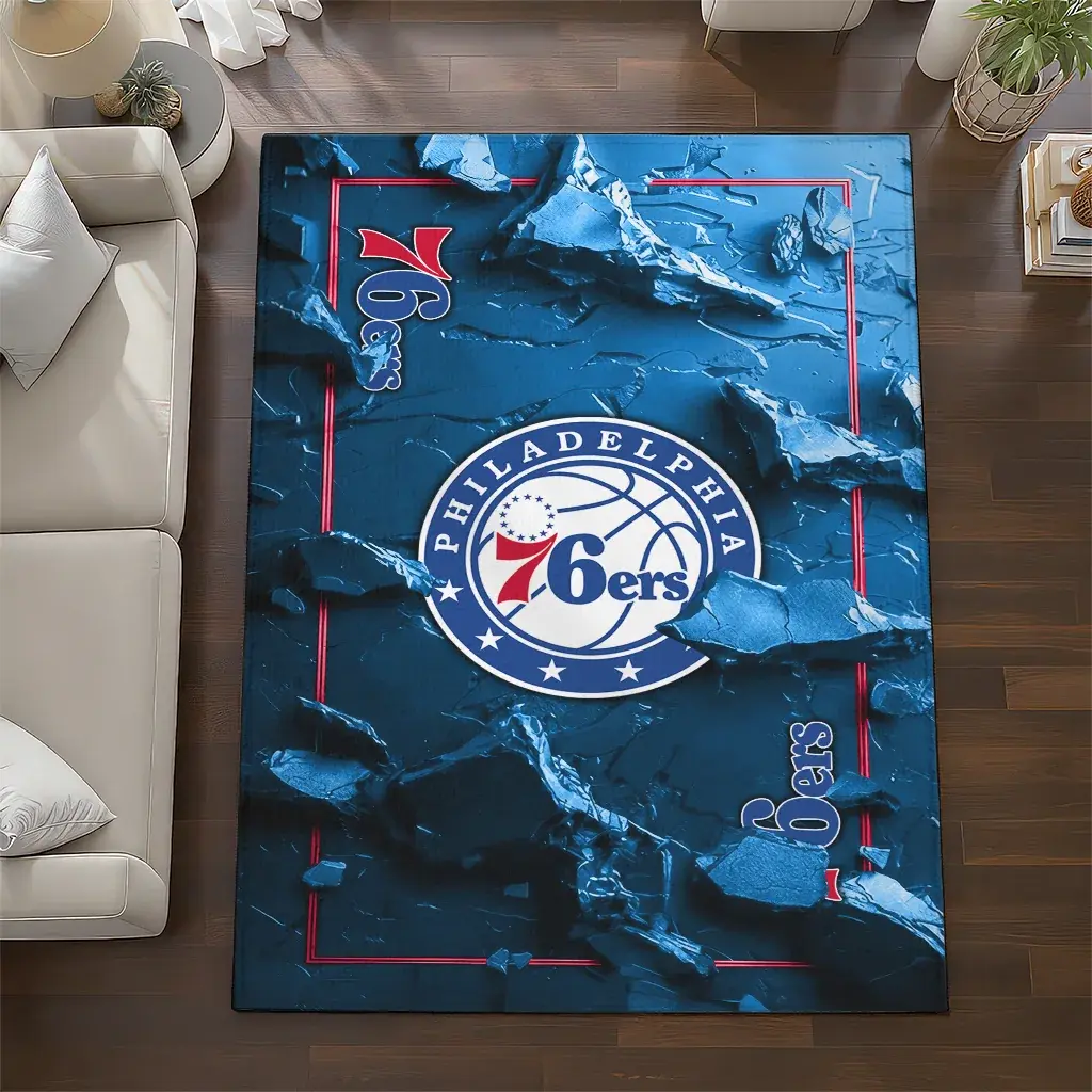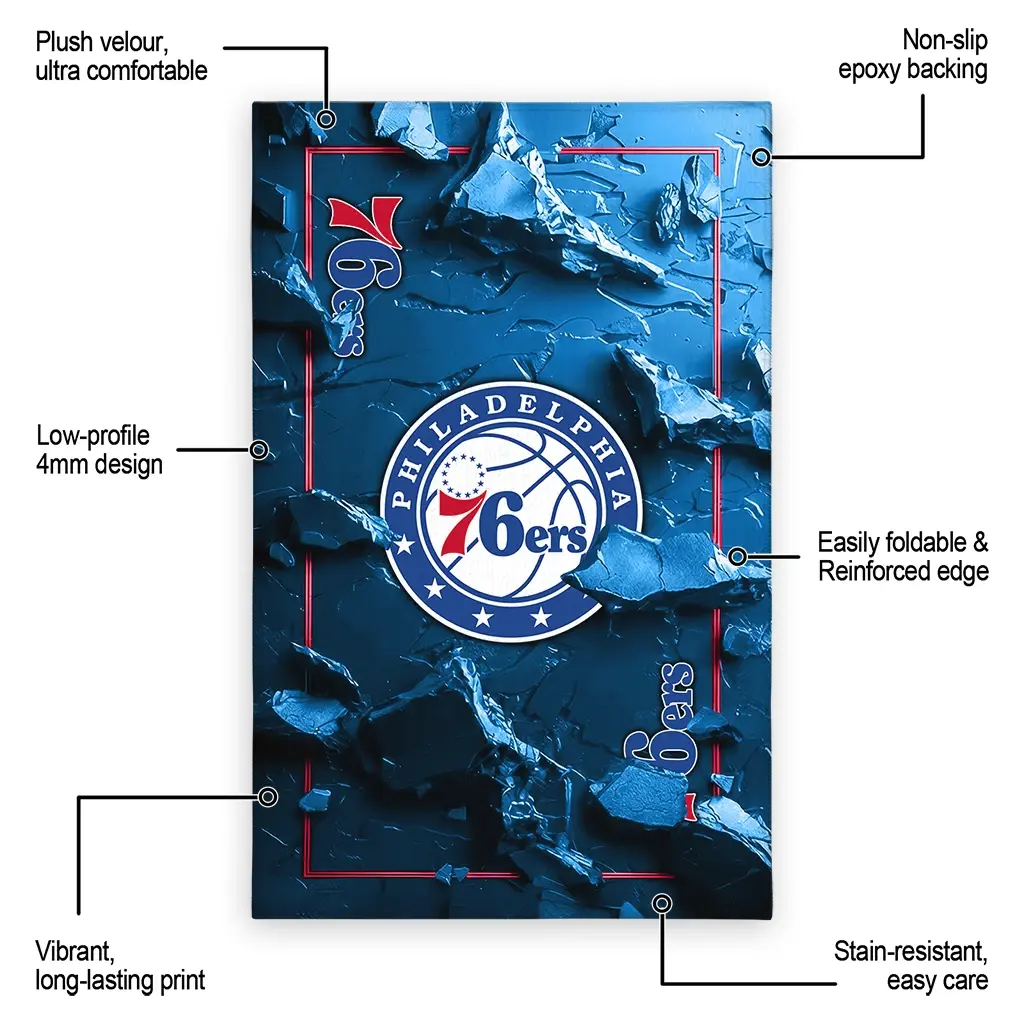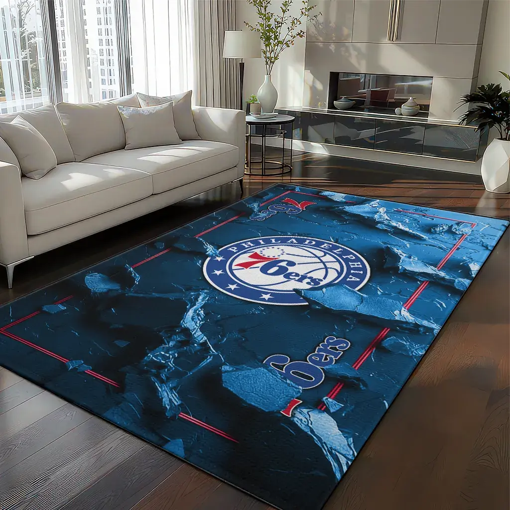 Philadelphia 76ers Rug – Cracked Surface Design Blue
