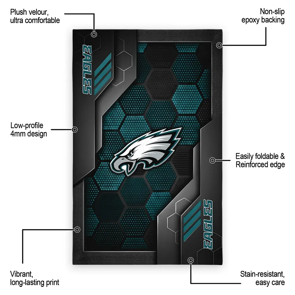 Hit a home run with your favorite team by displaying the Philadelphia Eagles Rug – Personalized Hexagonal Grid Pattern Green from MLB Fan Zone. Featuring a bold team design and crafted with plush velour, this durable sports rug offers ultimate comfort for your home or game-day fan cave. With a quality non-slip grip and stay-flat design, it’s the perfect accessory for any die-hard fan ready to rep their team from the living room to the clubhouse.