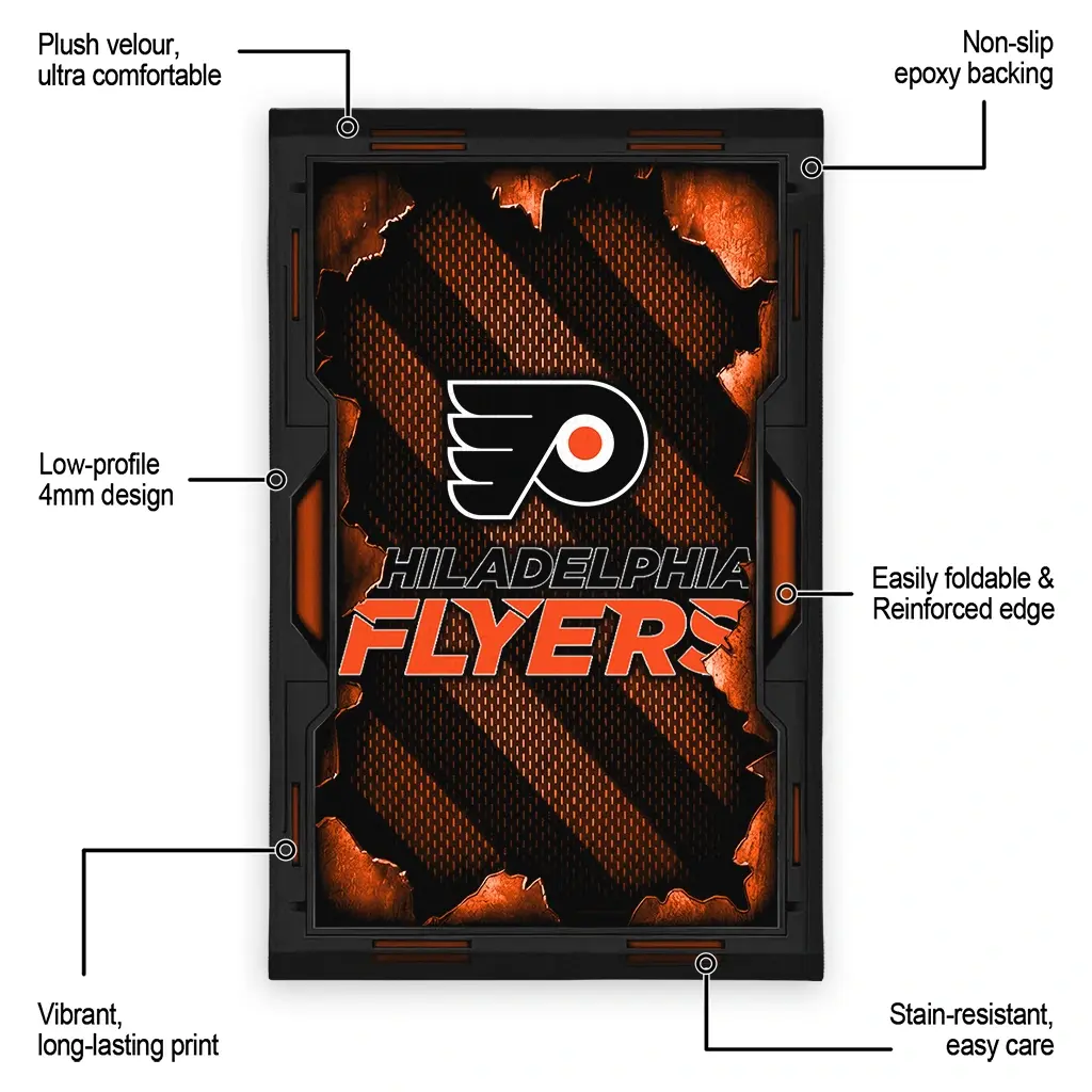 Hit a home run with your favorite team by displaying the Philadelphia Flyers Rug – Personalized Torn Mesh Orange from MLB Fan Zone. Featuring a bold team design and crafted with plush velour, this durable sports rug offers ultimate comfort for your home or game-day fan cave. With a quality non-slip grip and stay-flat design, it’s the perfect accessory for any die-hard fan ready to rep their team from the living room to the clubhouse.