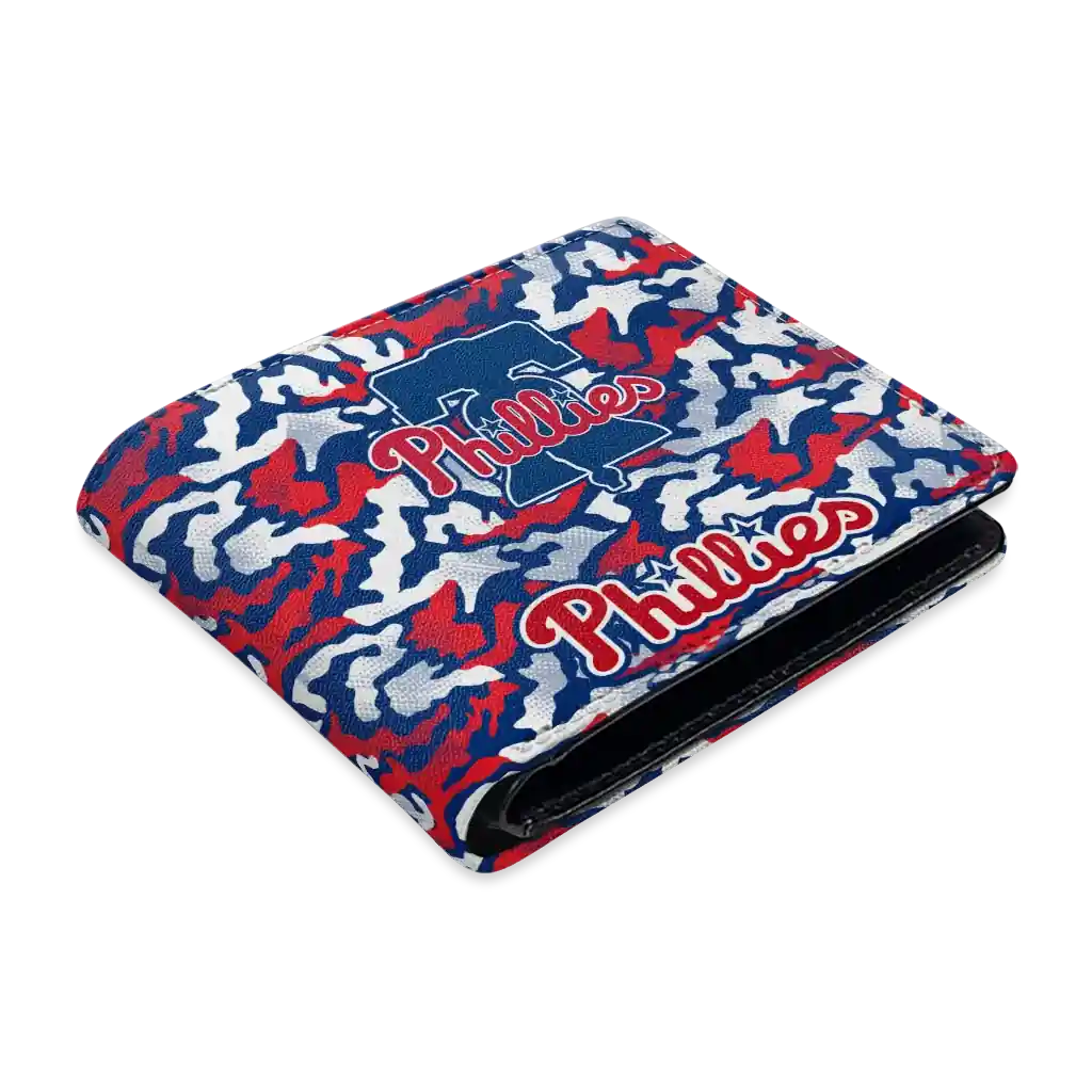 Hit a home run with Philadelphia Phillies by wearing the Philadelphia Phillies Camouflage Patches Blue White Wallet. Featuring a bold team design and crafted with premium materials, this durable sports wallet offers plenty of space for your cards, cash, and game-day essentials. With a secure fold-over closure, it’s the perfect accessory for any die-hard fan ready to rep their team, from the dugout to the streets.