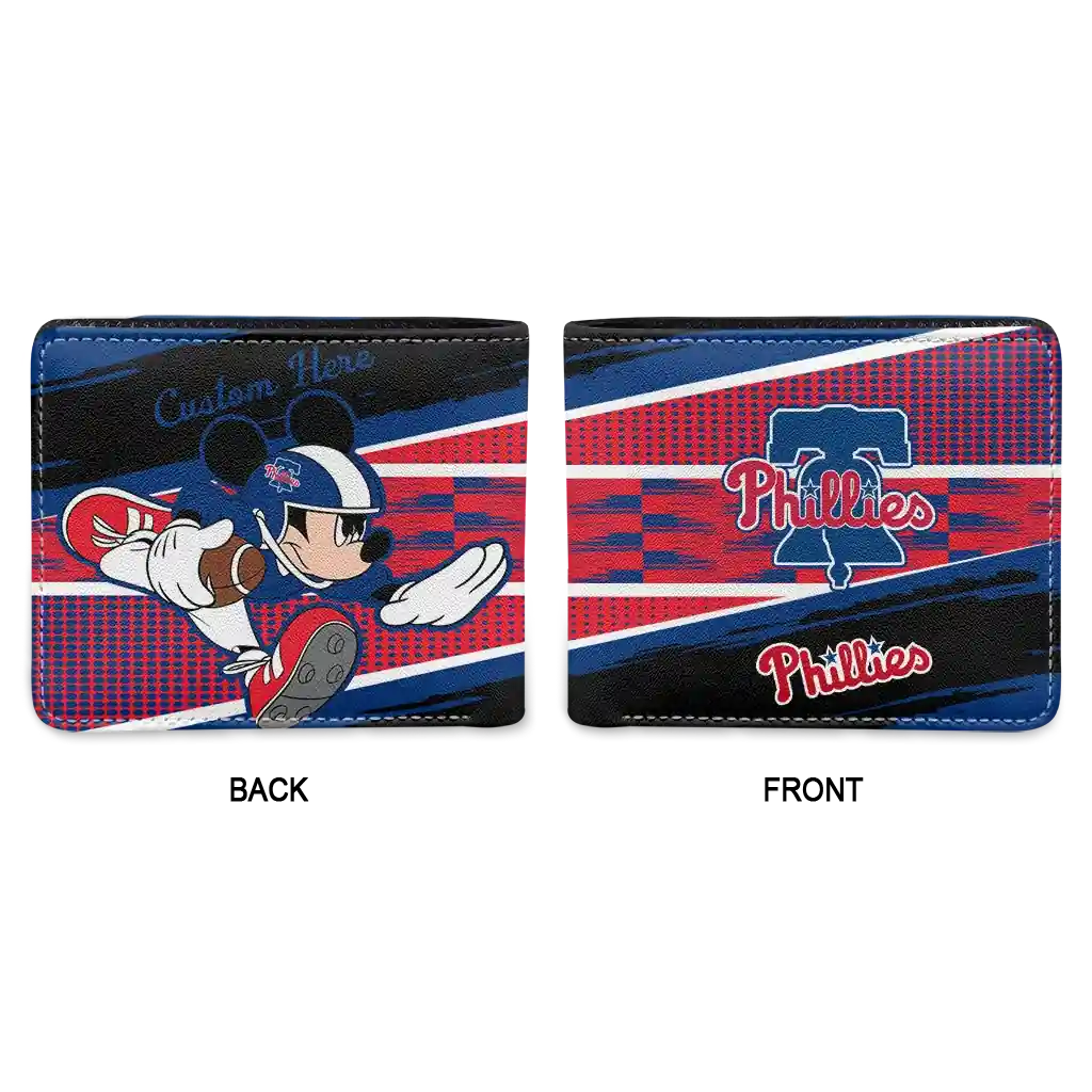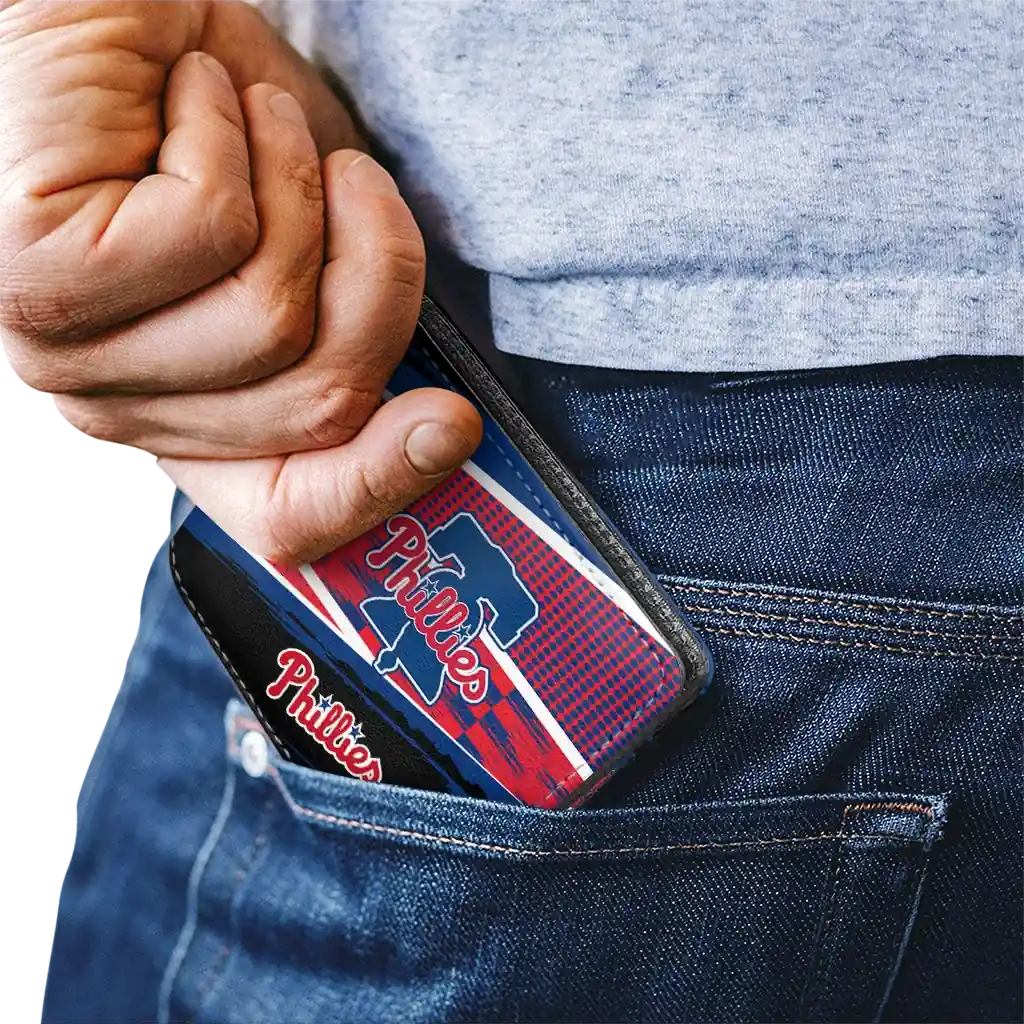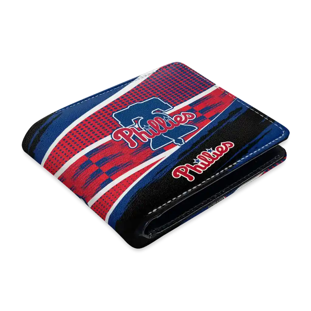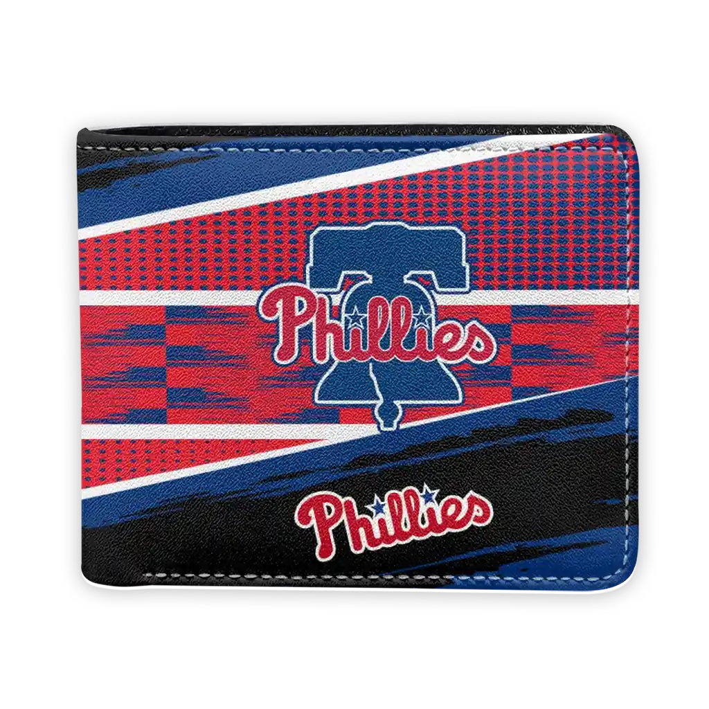 Hit a home run with Philadelphia Phillies by wearing the Custom Philadelphia Phillies Checkerboard Brush Blue Black Wallet. Featuring a bold team design and crafted with premium materials, this durable sports wallet offers plenty of space for your cards, cash, and game-day essentials. With a secure fold-over closure, it’s the perfect accessory for any die-hard fan ready to rep their team, from the dugout to the streets.