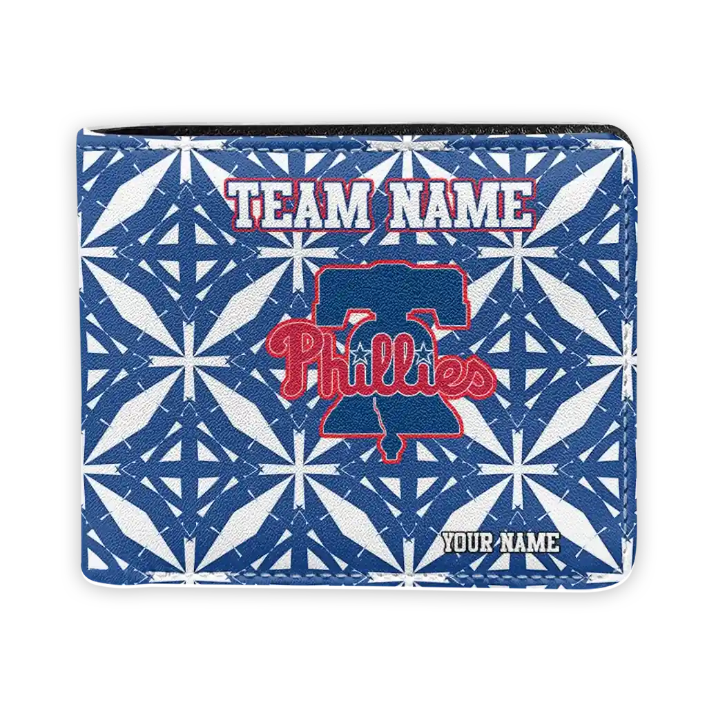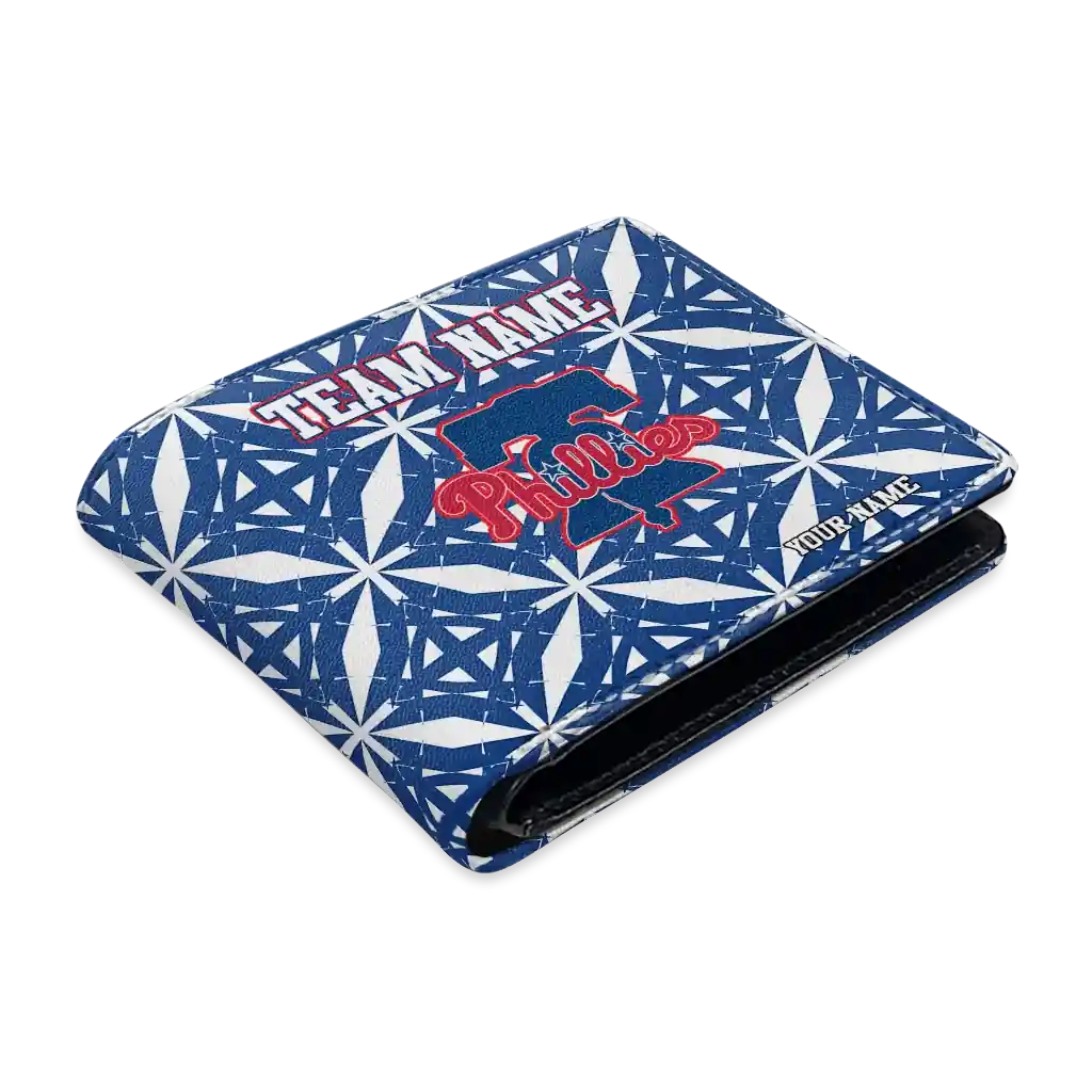 Hit a home run with Philadelphia Phillies by wearing the Personalized Philadelphia Phillies Geometric Star Blue White Wallet. Featuring a bold team design and crafted with premium materials, this durable sports wallet offers plenty of space for your cards, cash, and game-day essentials. With a secure fold-over closure, it’s the perfect accessory for any die-hard fan ready to rep their team, from the dugout to the streets.