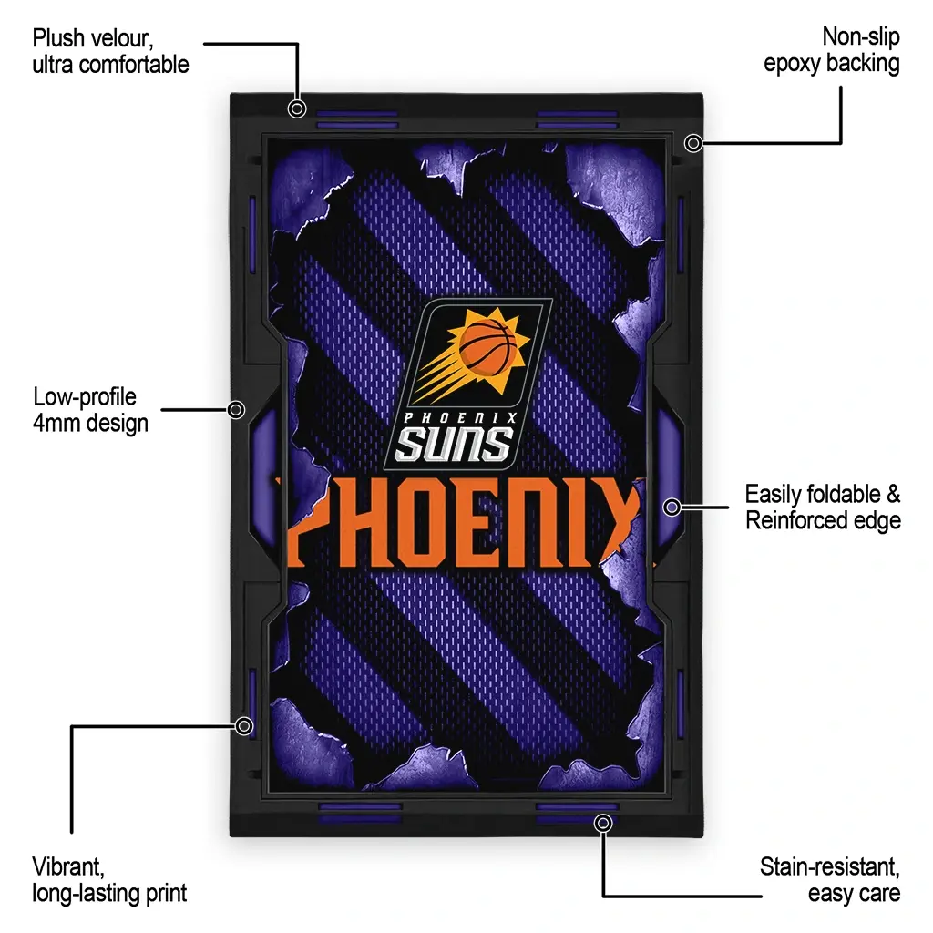 Hit a home run with your favorite team by displaying the Phoenix Suns Rug – Custom Torn Mesh Purple from MLB Fan Zone. Featuring a bold team design and crafted with plush velour, this durable sports rug offers ultimate comfort for your home or game-day fan cave. With a quality non-slip grip and stay-flat design, it’s the perfect accessory for any die-hard fan ready to rep their team from the living room to the clubhouse.