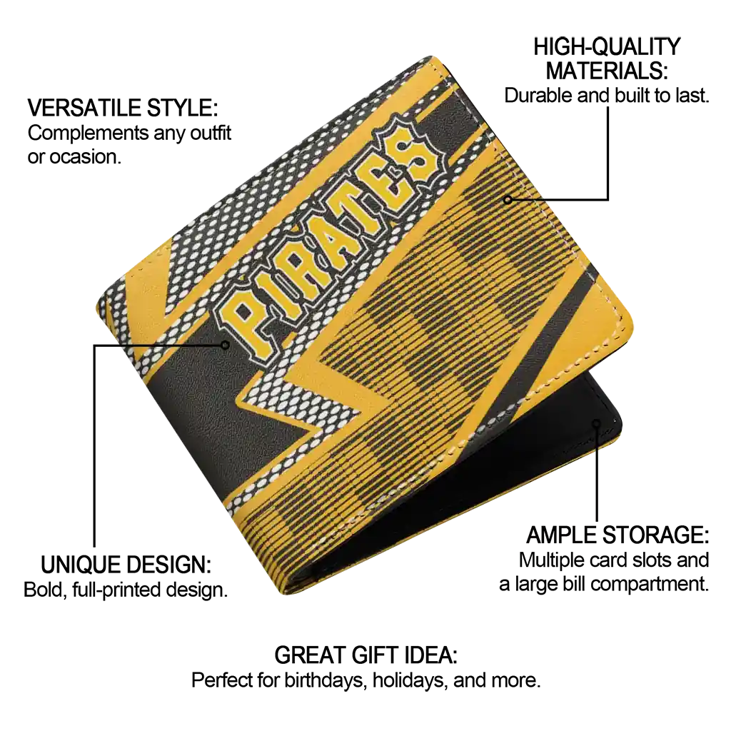 Hit a home run with Pittsburgh Pirates by wearing the Pittsburgh Pirates Arrow Mesh Black Wallet. Featuring a bold team design and crafted with premium materials, this durable sports wallet offers plenty of space for your cards, cash, and game-day essentials. With a secure fold-over closure, it’s the perfect accessory for any die-hard fan ready to rep their team, from the dugout to the streets.