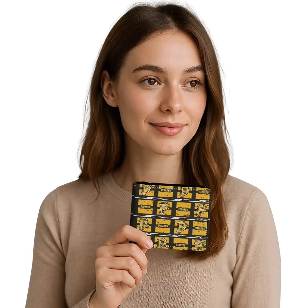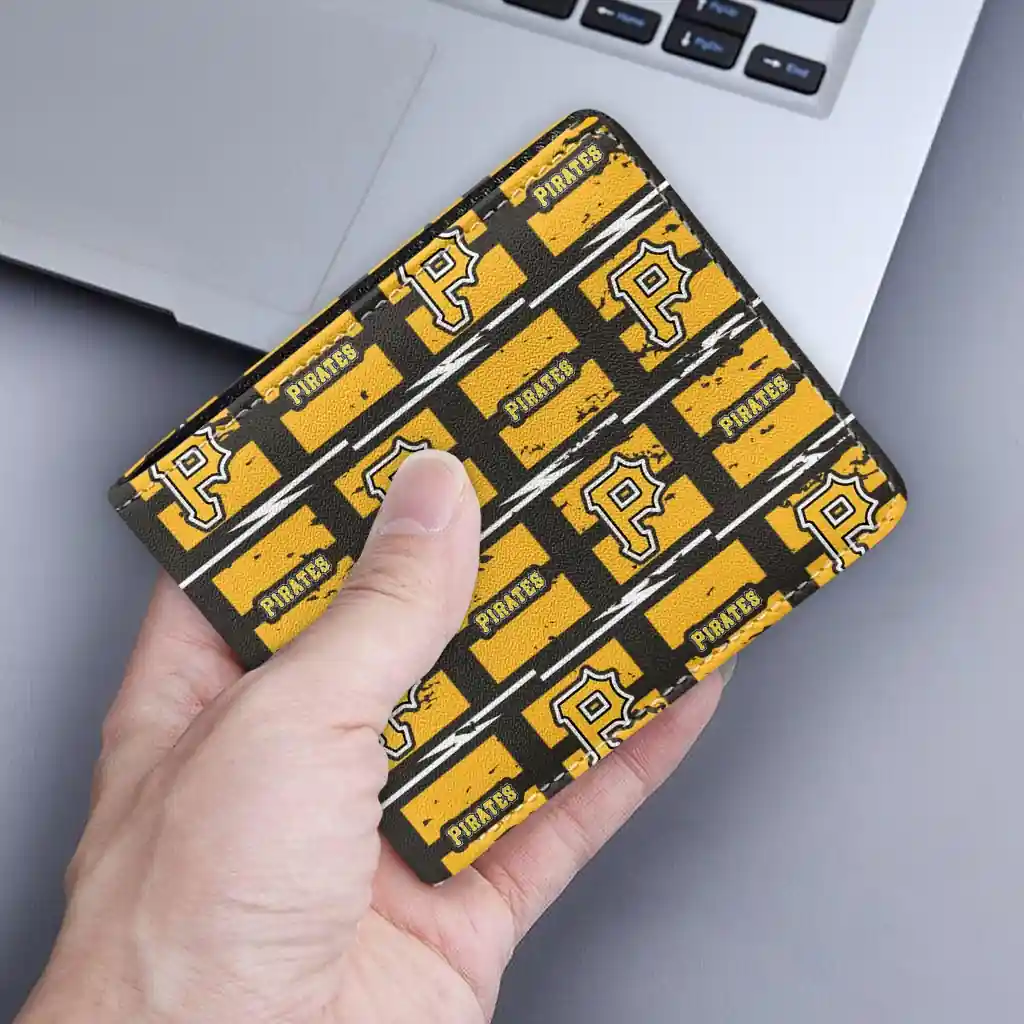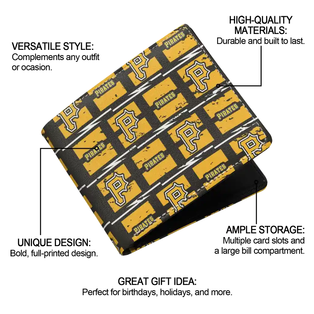 Hit a home run with Pittsburgh Pirates by wearing the Pittsburgh Pirates Block Pattern Yellow Crocs Wallet. Featuring a bold team design and crafted with premium materials, this durable sports wallet offers plenty of space for your cards, cash, and game-day essentials. With a secure fold-over closure, it’s the perfect accessory for any die-hard fan ready to rep their team, from the dugout to the streets.