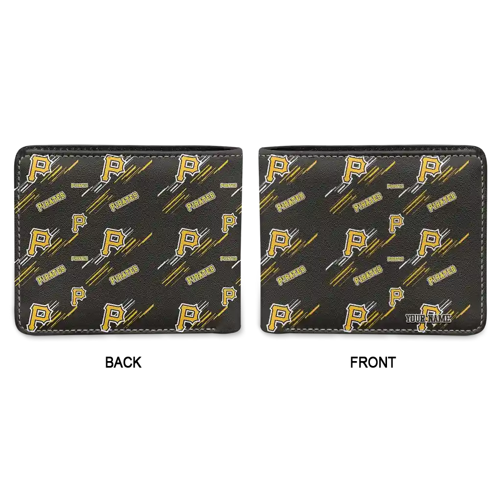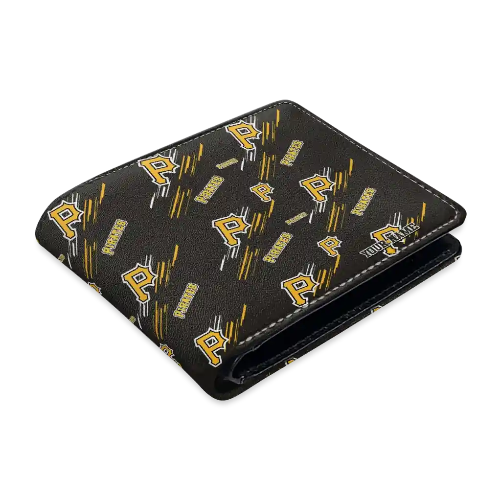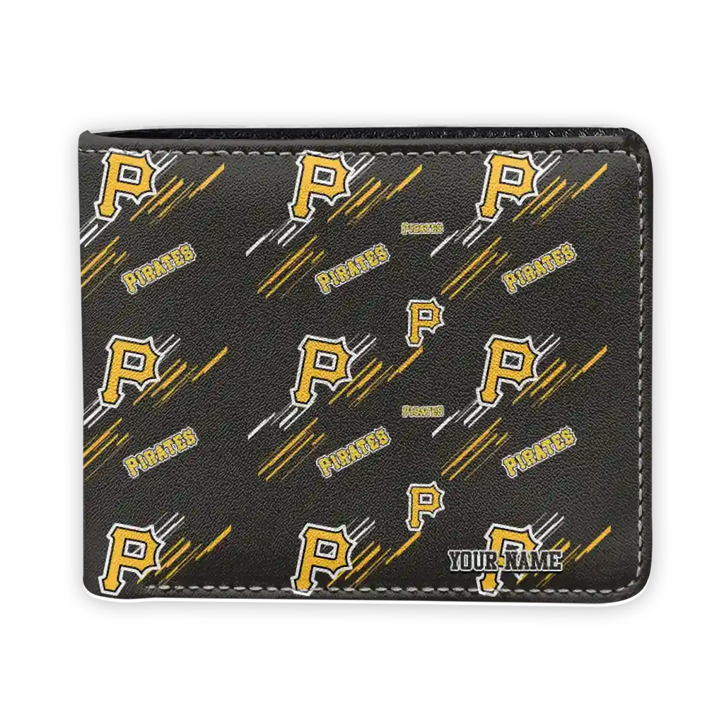 Hit a home run with Pittsburgh Pirates by wearing the Custom Pittsburgh Pirates Streak Motif Black Wallet. Featuring a bold team design and crafted with premium materials, this durable sports wallet offers plenty of space for your cards, cash, and game-day essentials. With a secure fold-over closure, it’s the perfect accessory for any die-hard fan ready to rep their team, from the dugout to the streets.