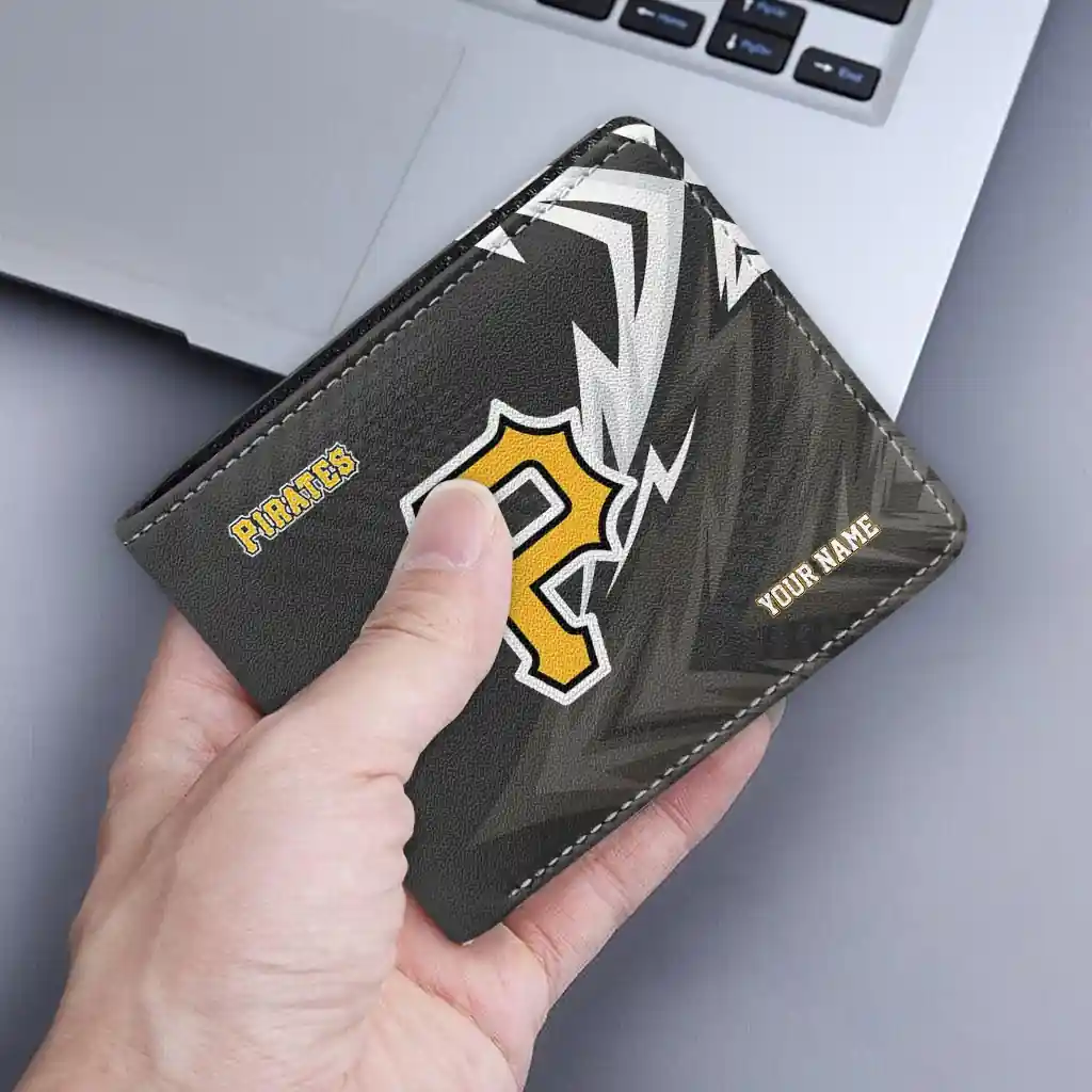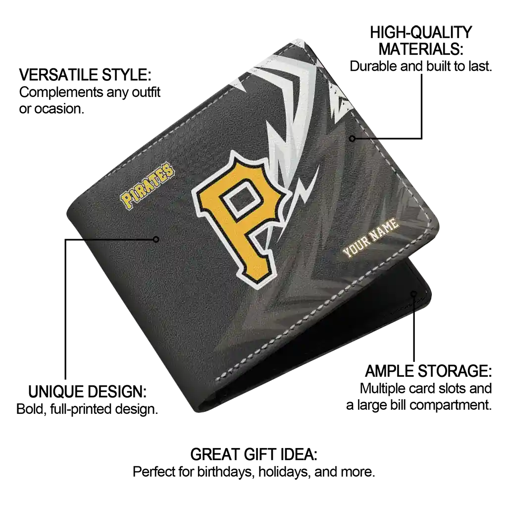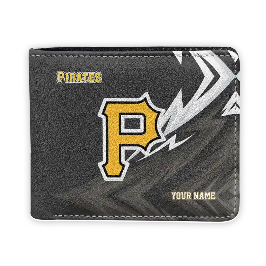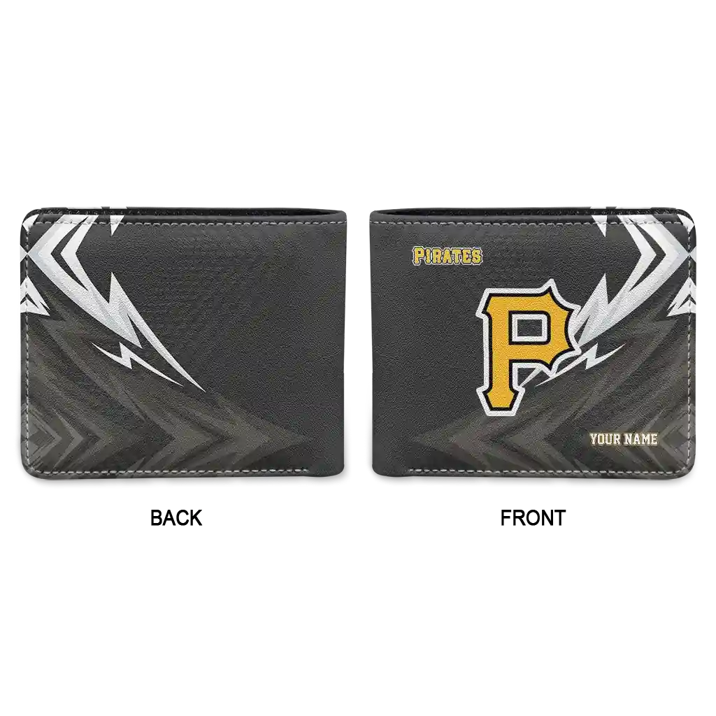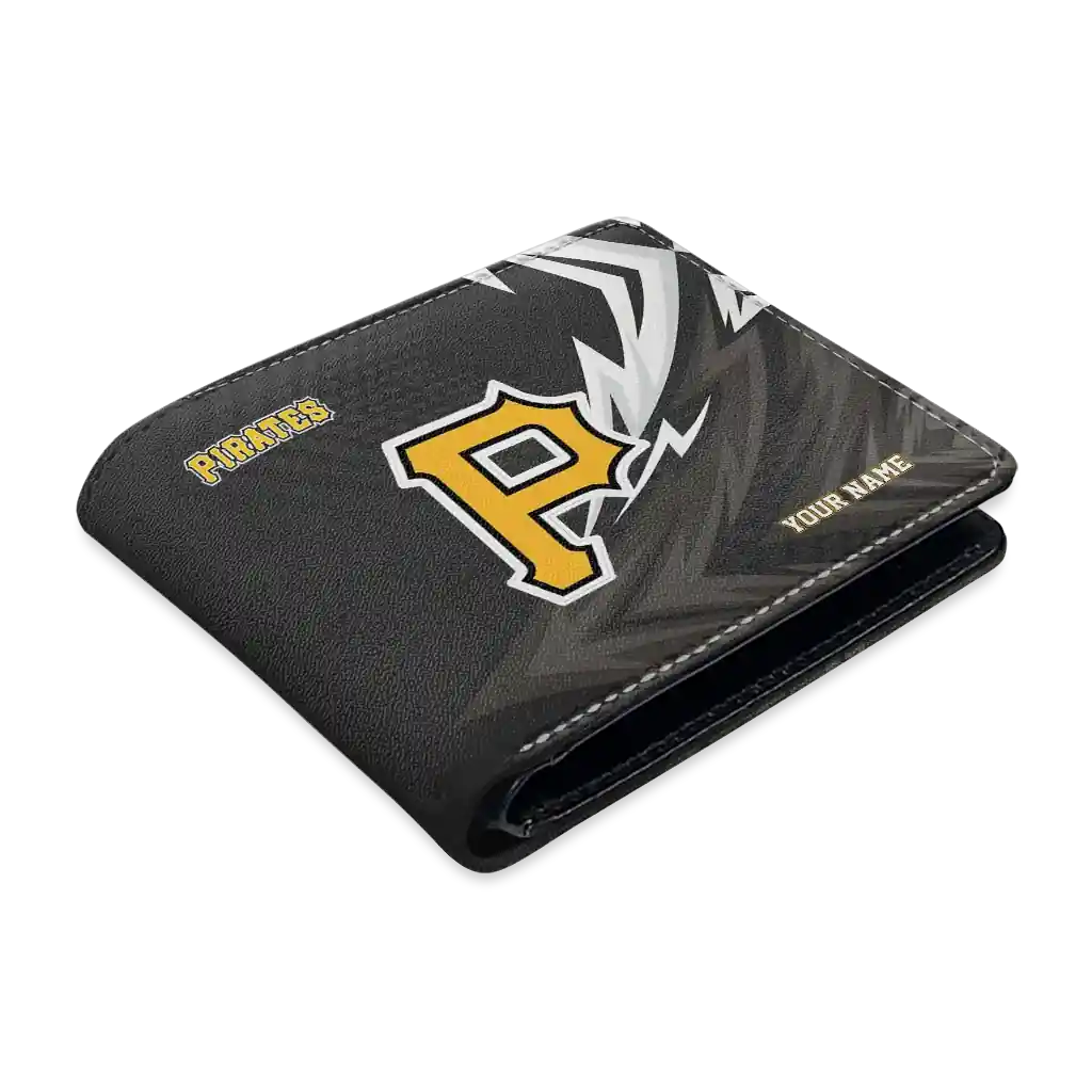 Hit a home run with Pittsburgh Pirates by wearing the Customized Pittsburgh Pirates Sharp Arrow Streaks Black Wallet. Featuring a bold team design and crafted with premium materials, this durable sports wallet offers plenty of space for your cards, cash, and game-day essentials. With a secure fold-over closure, it’s the perfect accessory for any die-hard fan ready to rep their team, from the dugout to the streets.