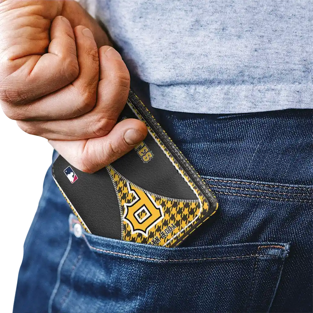 Hit a home run with Pittsburgh Pirates by wearing the Customized Pittsburgh Pirates Zipper Split Black Wallet. Featuring a bold team design and crafted with premium materials, this durable sports wallet offers plenty of space for your cards, cash, and game-day essentials. With a secure fold-over closure, it’s the perfect accessory for any die-hard fan ready to rep their team, from the dugout to the streets.