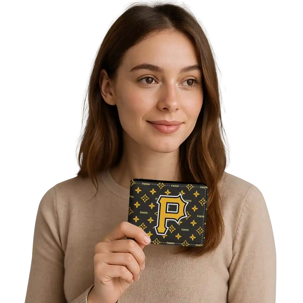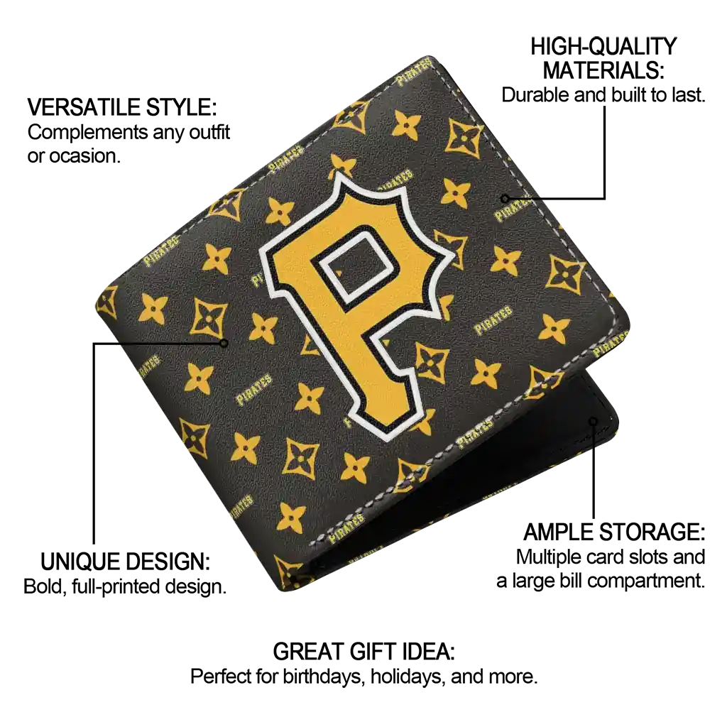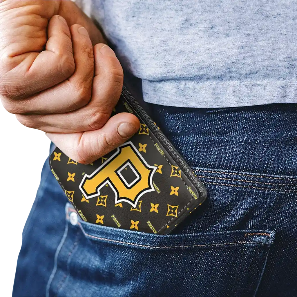 Hit a home run with Pittsburgh Pirates by wearing the Pittsburgh Pirates Iconic Monogram Bloom Black Wallet. Featuring a bold team design and crafted with premium materials, this durable sports wallet offers plenty of space for your cards, cash, and game-day essentials. With a secure fold-over closure, it’s the perfect accessory for any die-hard fan ready to rep their team, from the dugout to the streets.