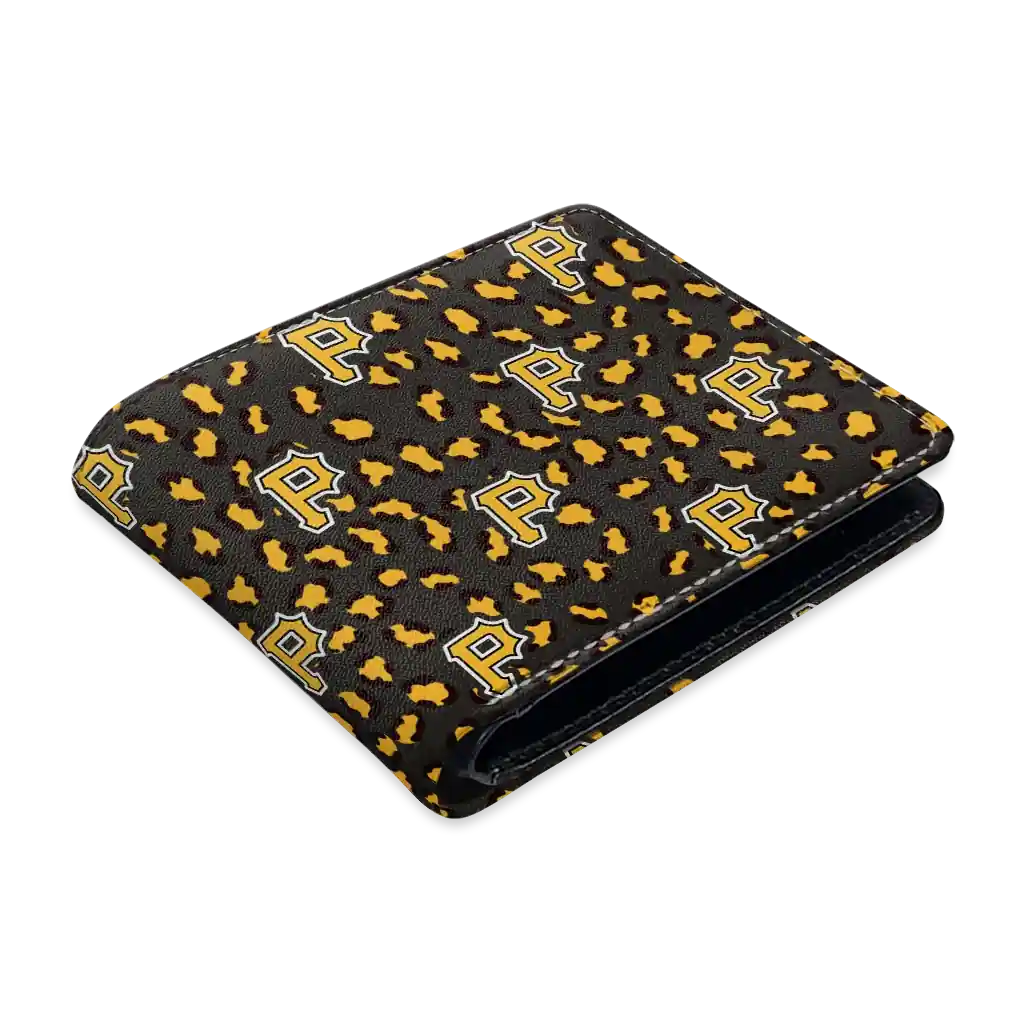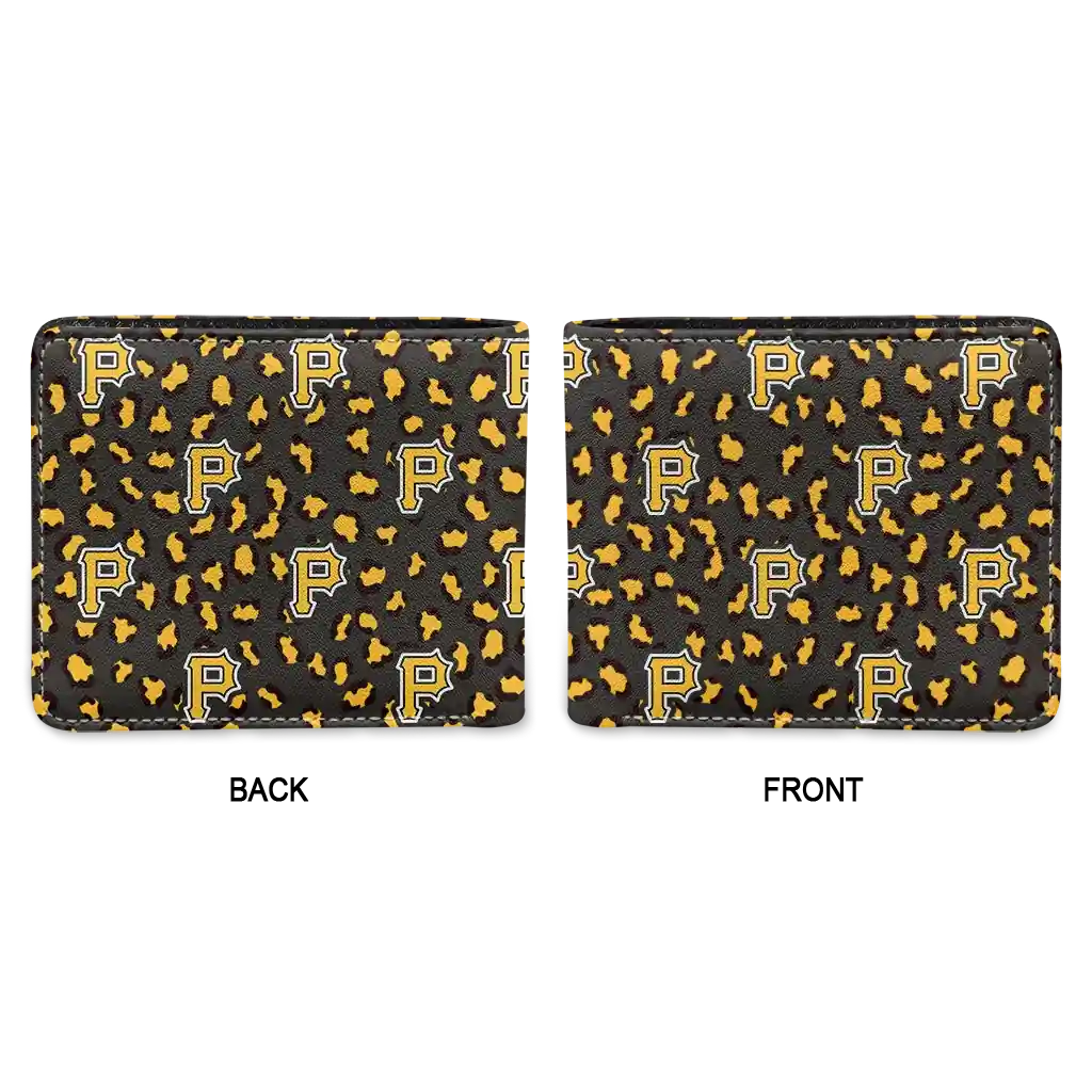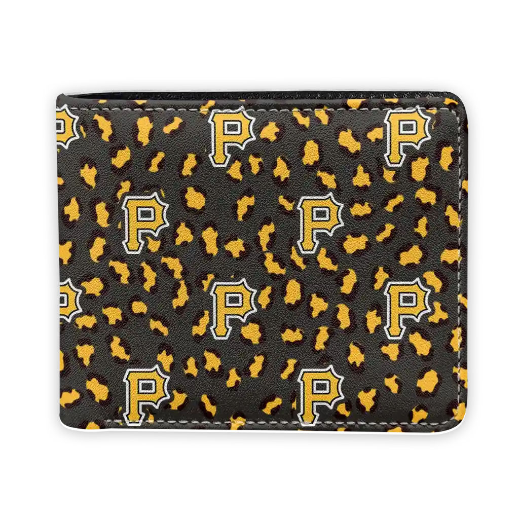 Hit a home run with Pittsburgh Pirates by wearing the Pittsburgh Pirates Leopard Texture Black Wallet. Featuring a bold team design and crafted with premium materials, this durable sports wallet offers plenty of space for your cards, cash, and game-day essentials. With a secure fold-over closure, it’s the perfect accessory for any die-hard fan ready to rep their team, from the dugout to the streets.
