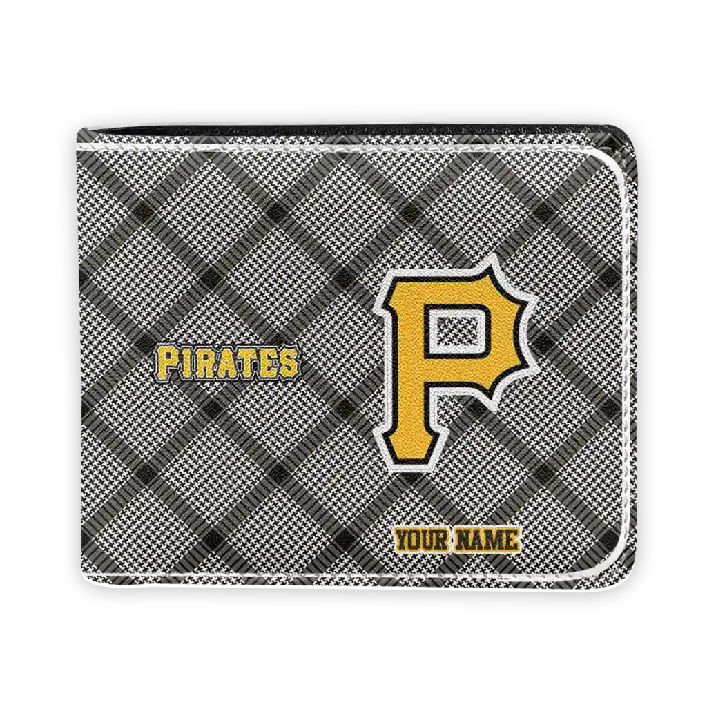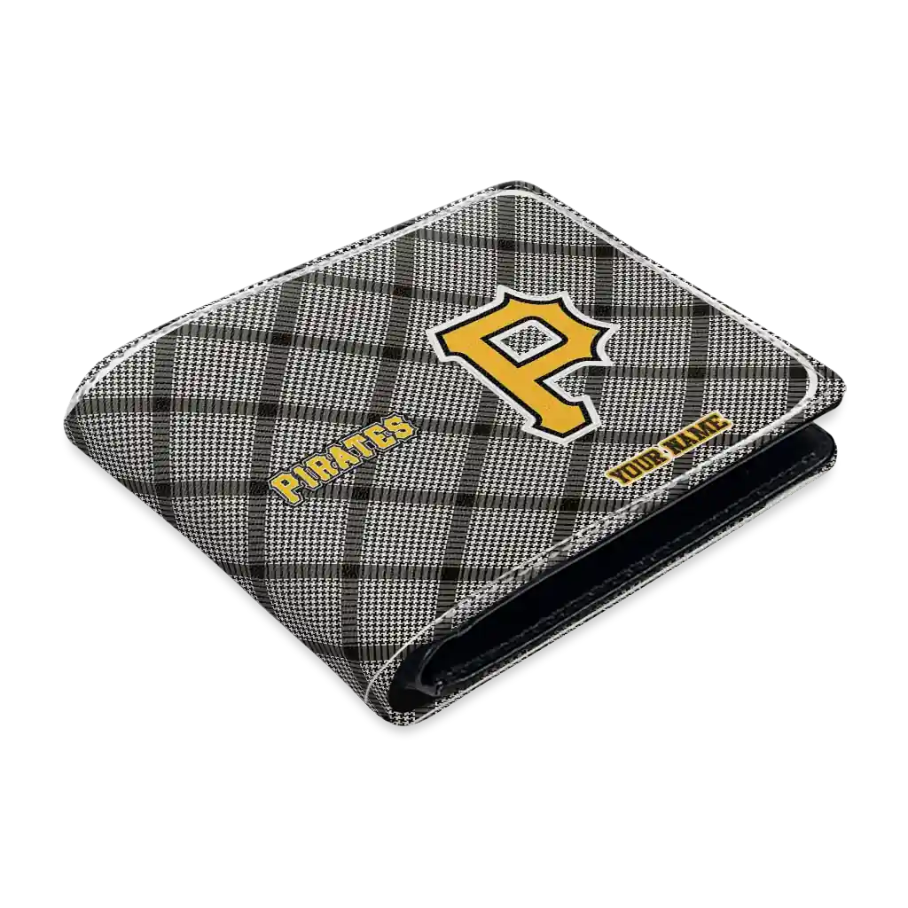 Hit a home run with Pittsburgh Pirates by wearing the Personalized Pittsburgh Pirates Plaid Grid Black Wallet. Featuring a bold team design and crafted with premium materials, this durable sports wallet offers plenty of space for your cards, cash, and game-day essentials. With a secure fold-over closure, it’s the perfect accessory for any die-hard fan ready to rep their team, from the dugout to the streets.