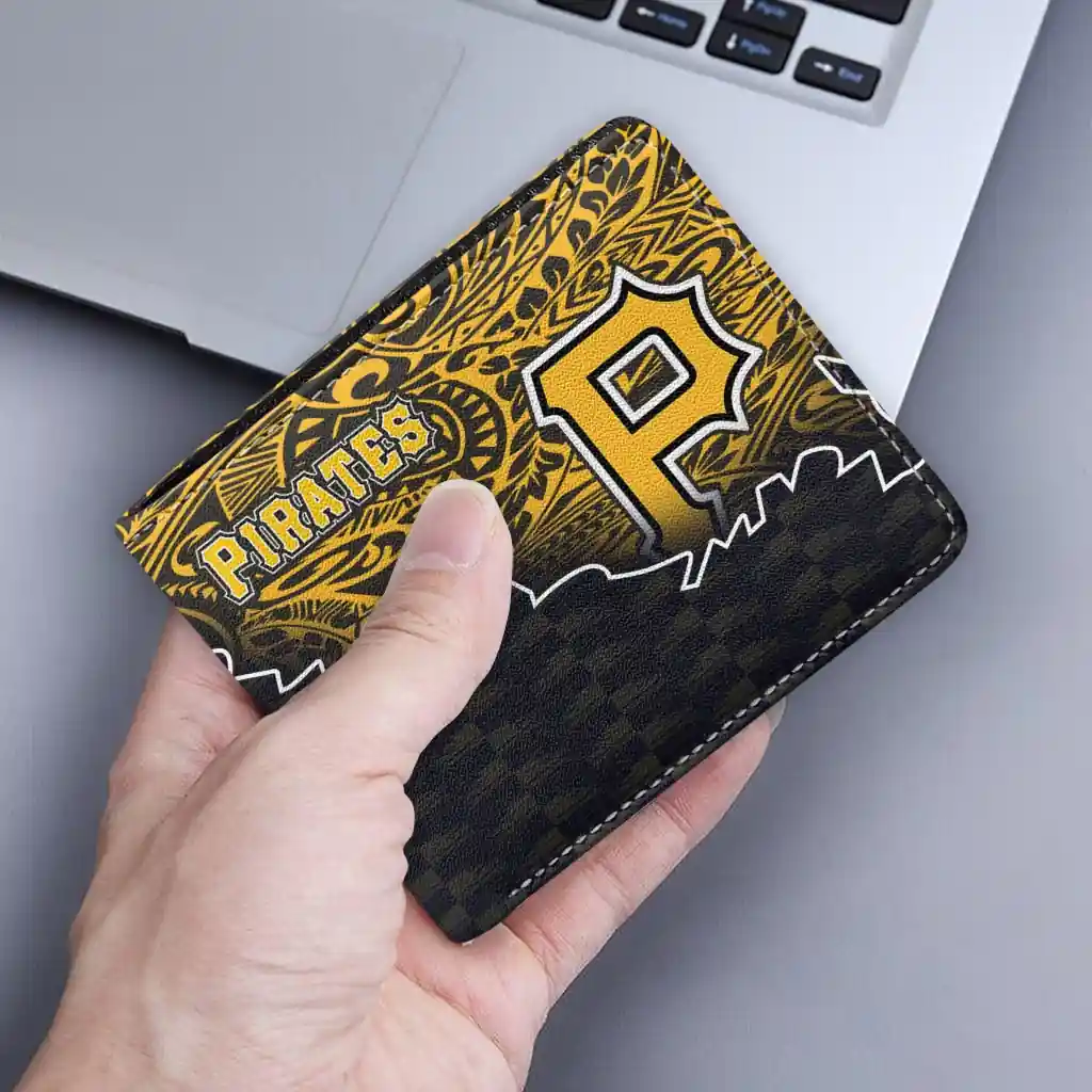 Hit a home run with Pittsburgh Pirates by wearing the Pittsburgh Pirates Tribal Fade Fusion Black Wallet. Featuring a bold team design and crafted with premium materials, this durable sports wallet offers plenty of space for your cards, cash, and game-day essentials. With a secure fold-over closure, it’s the perfect accessory for any die-hard fan ready to rep their team, from the dugout to the streets.