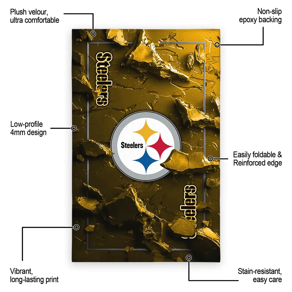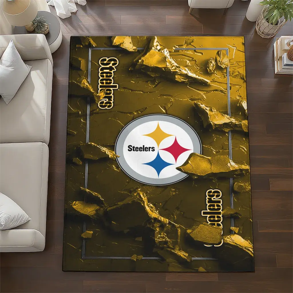 Pittsburgh Steelers Rug – Cracked Surface Design Gold