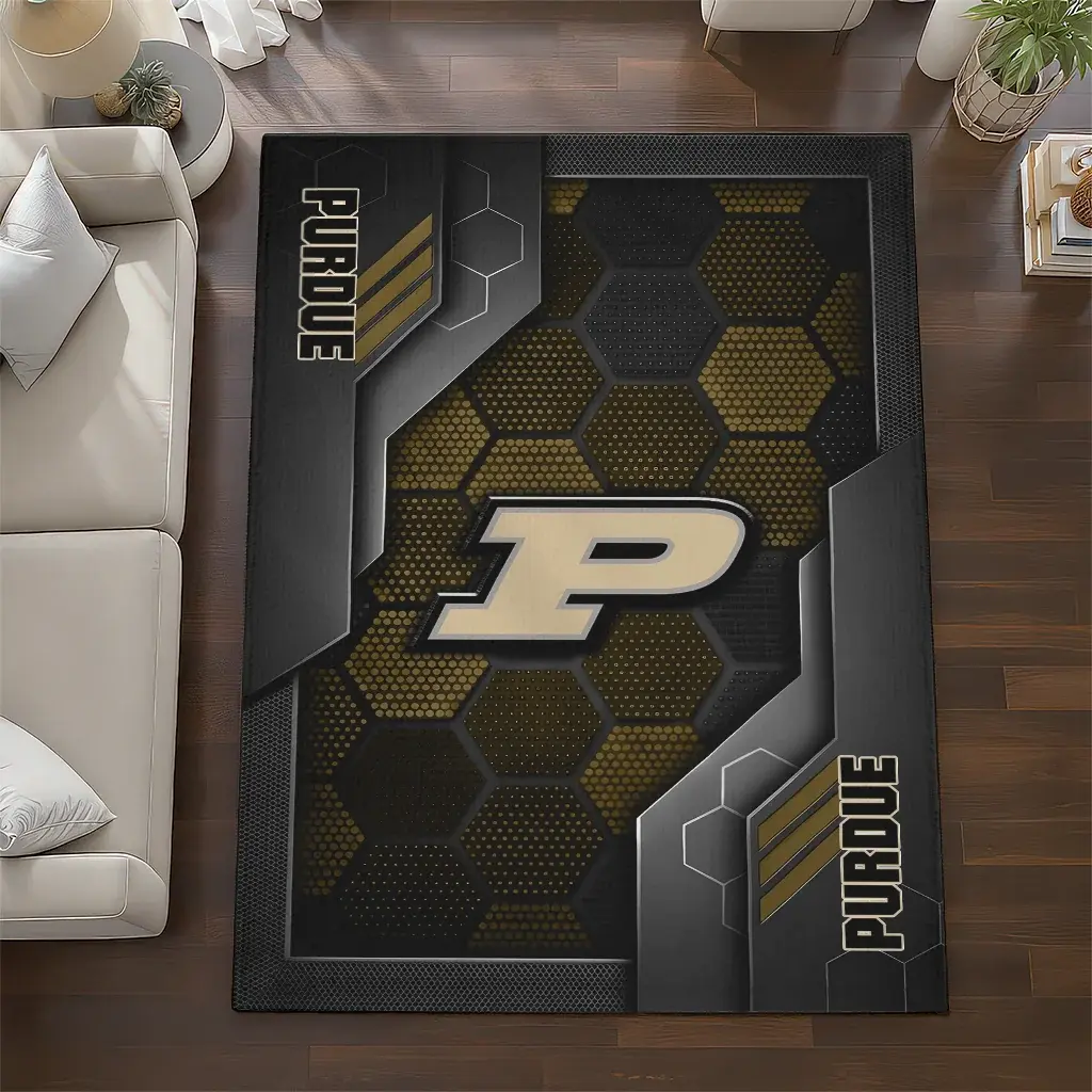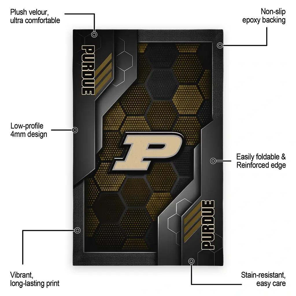 Purdue Boilermakers Rug – Hexagonal Grid Pattern Black